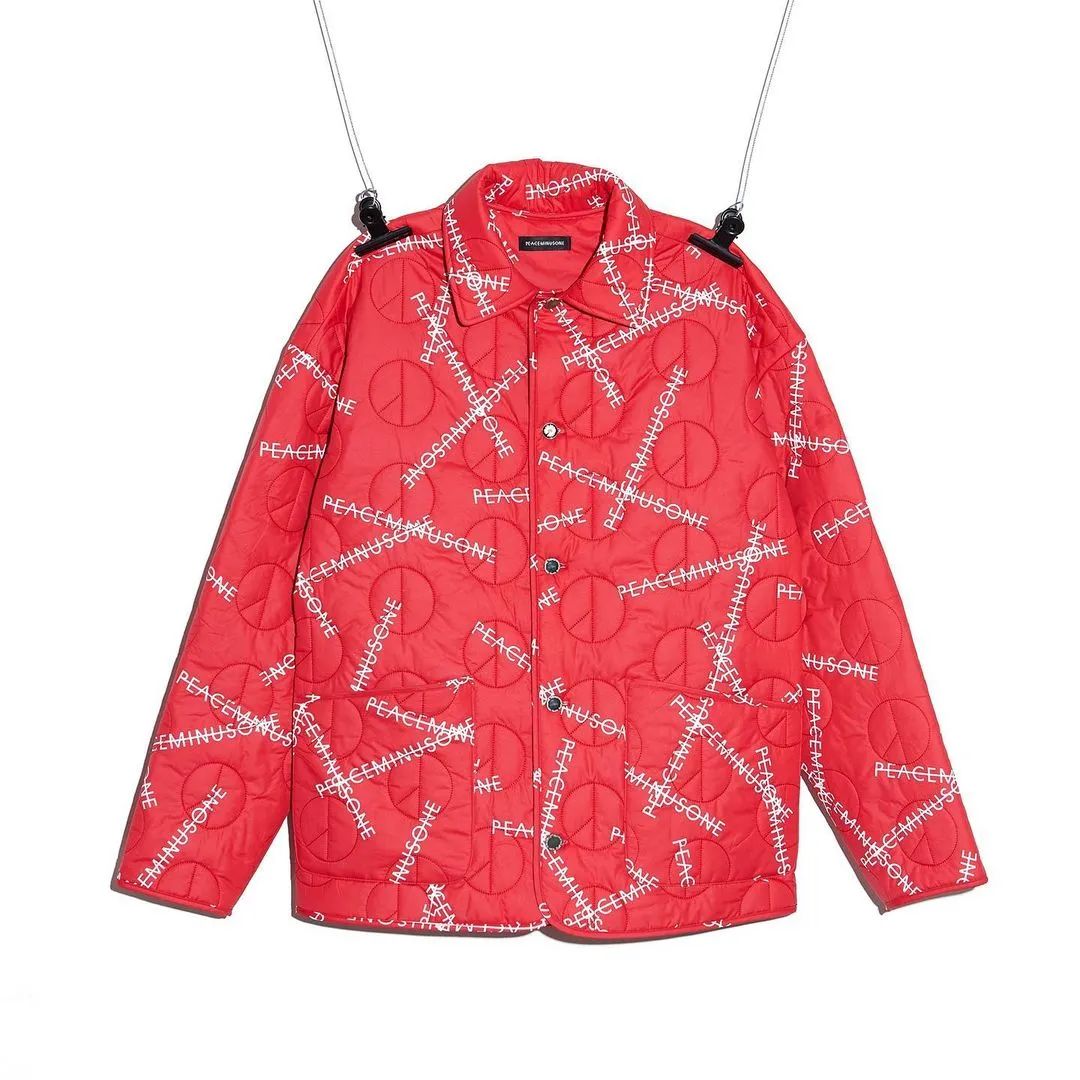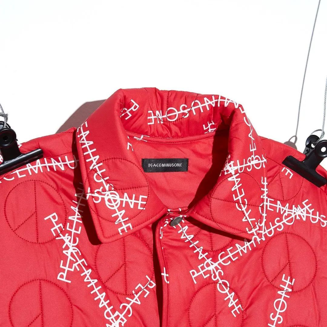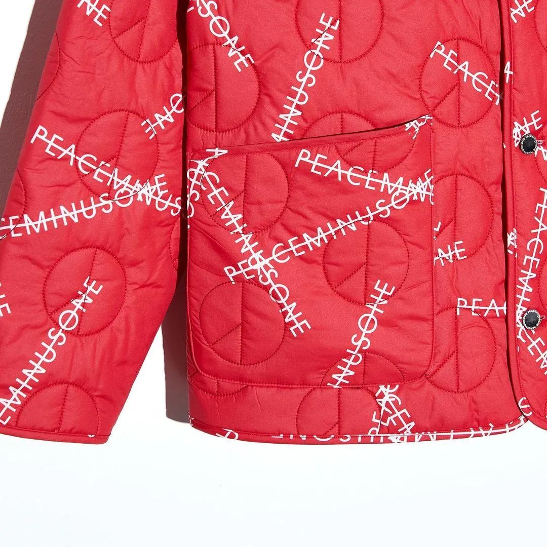 红色的这件则是以正红色为主色调,印满的是 PEACEMINUSONE Logo。