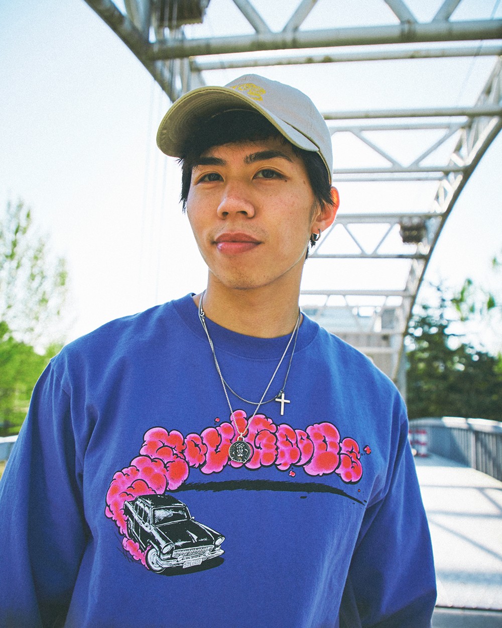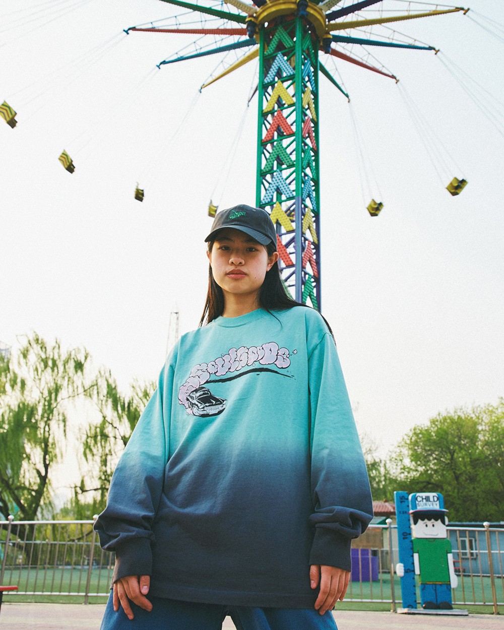 此外以吊染技术为看点的 T 恤中,SOULGOODS 选用中国汽车文化中的代表性汽车形象与 HOT ROD 文化进行碰撞,以手绘式印花重塑中国文化符号的魅力。