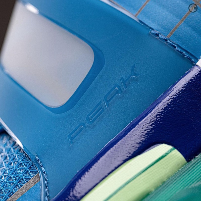 鞋舌以凸起的地球图案作为背景,同时点缀匹克 Logo,彰显配色身份。