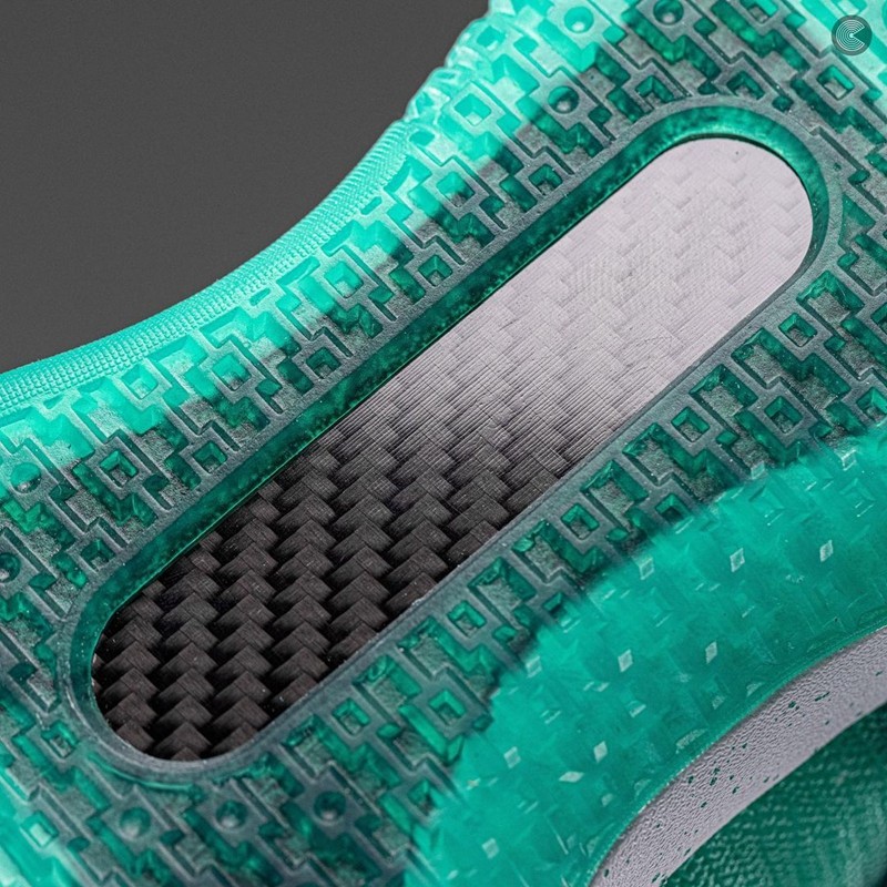中底处搭载态极科技和一块面积可观的碳板,保证实战脚感的同时完善设计。