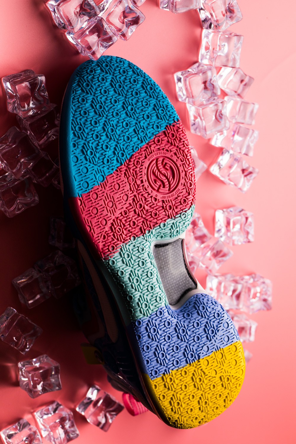 五色拼接外底是「冰山」配色与众不同的设计元素,进一步提升了整双鞋的清爽气息。