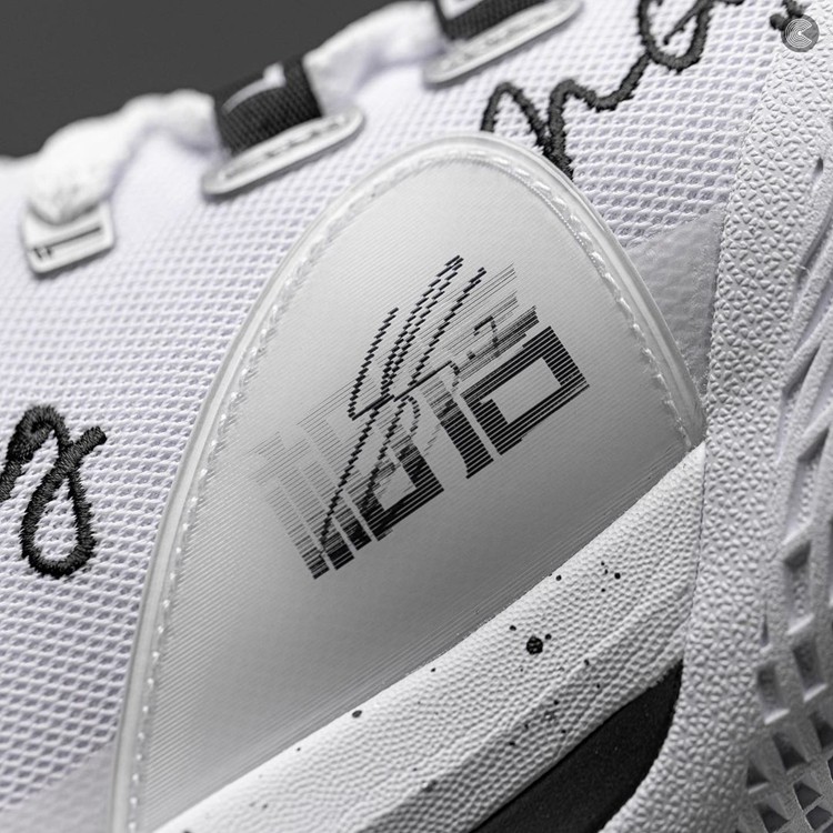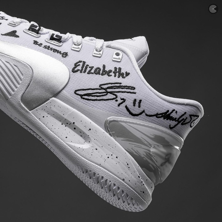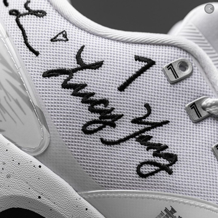 其他细节方面,足弓内侧支撑部分采用闪卡材质,在手写签名字体「相信」「自信」间切换。