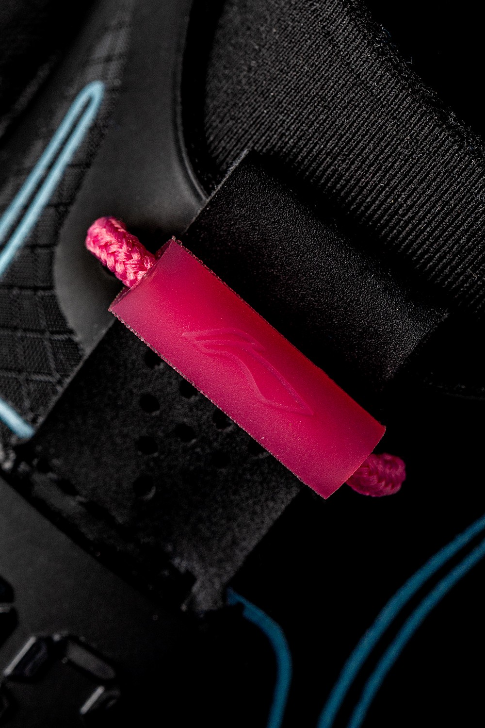 其中右脚在粉色橡胶圈的环绕内,点缀驭帅系列 Logo。