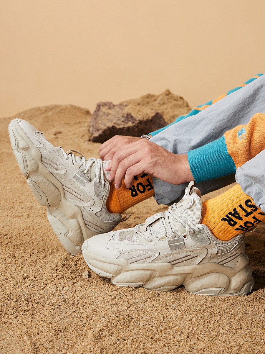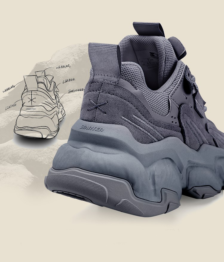 岩层系列是在复古 “旅游鞋” 风格中汲取灵感,结合了当下最流行的厚底老爹鞋。