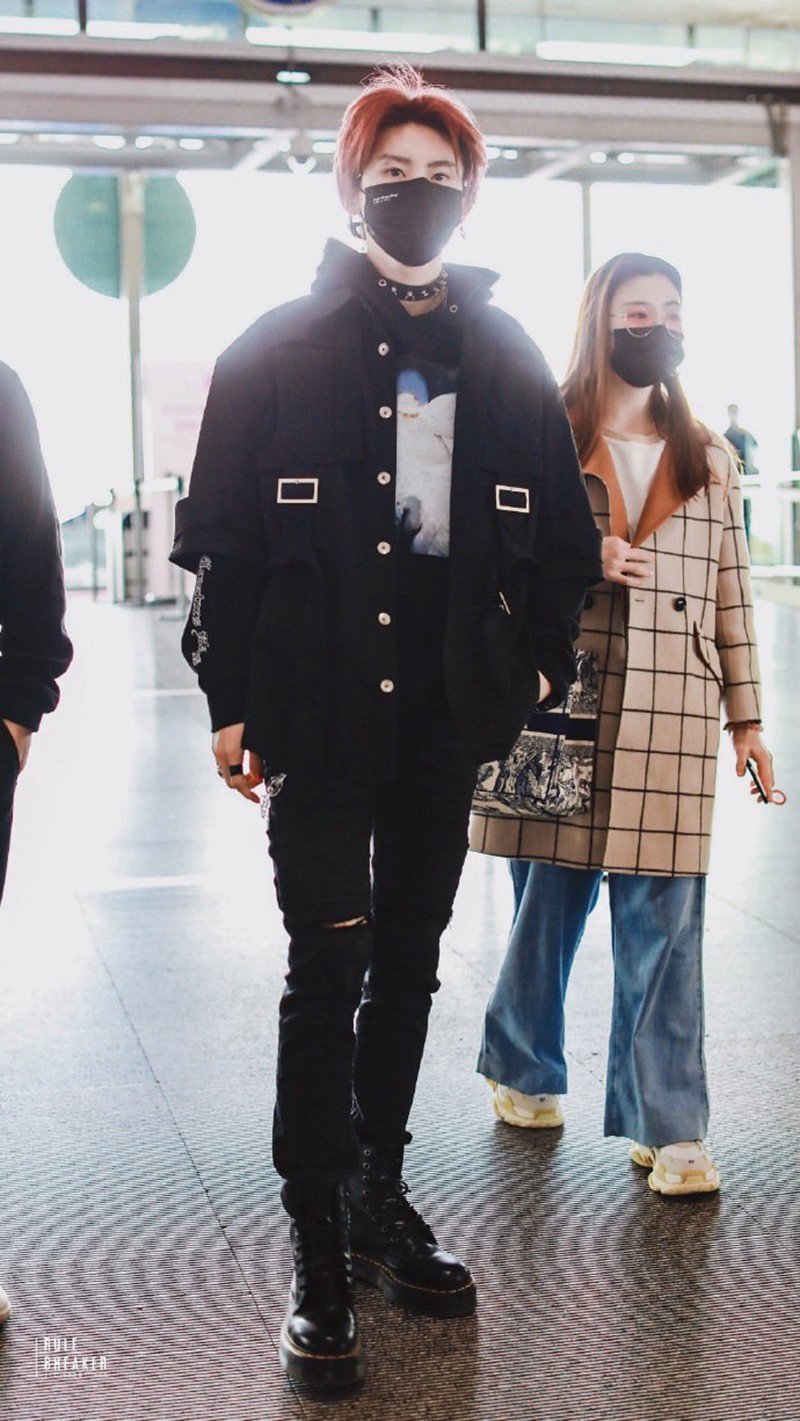 近日粉丝在机场拍下王琳凯上脚 Dr.Martens 马丁靴,街头范十足。