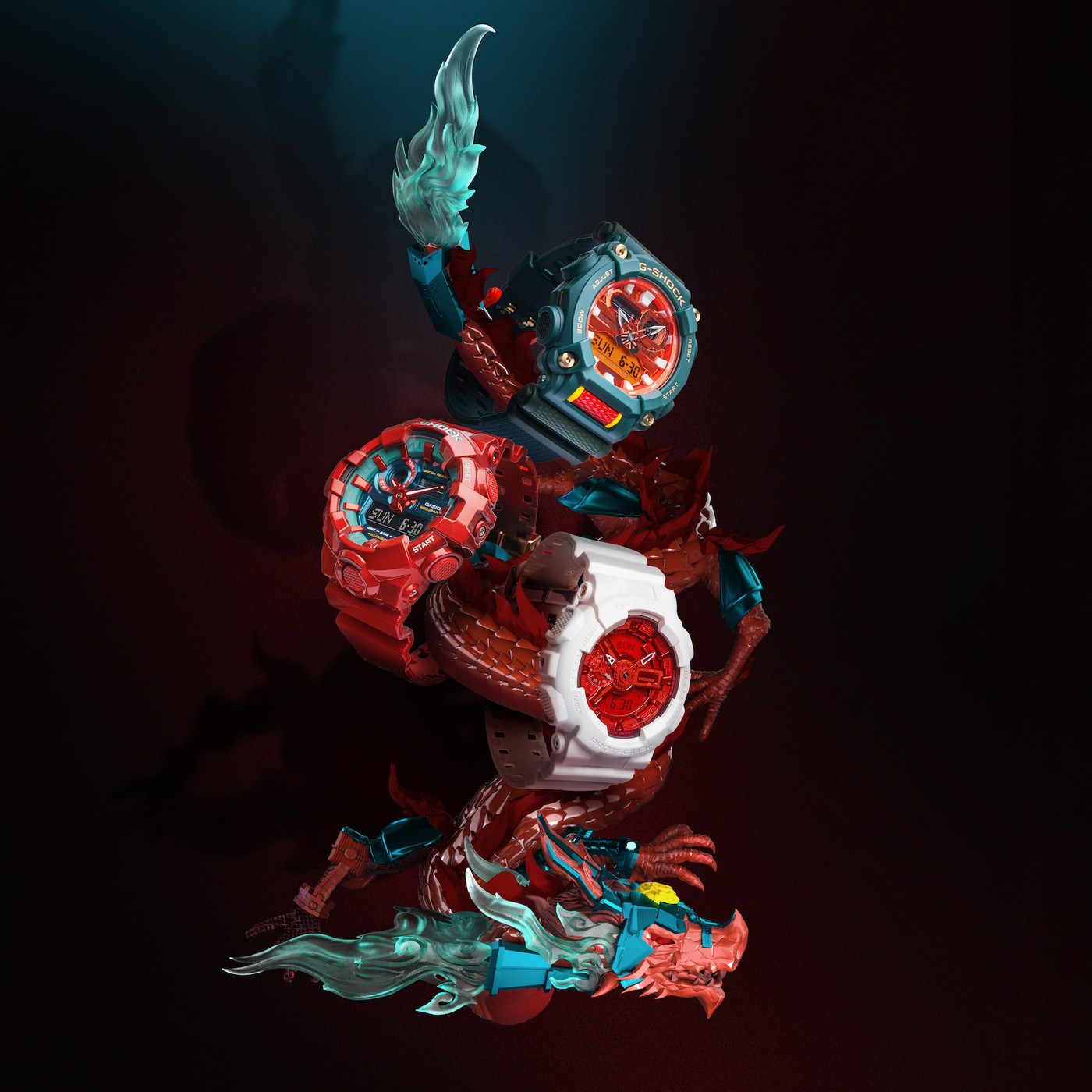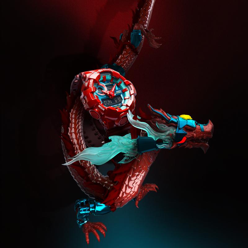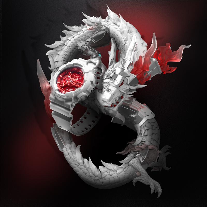 随后两位新代言人就带货 G-SHOCK 全新 「中华龙」系列。