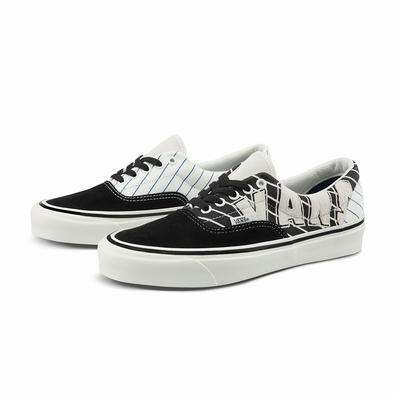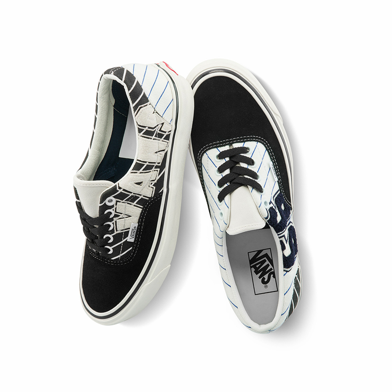 Era 鞋款除羊羔毛制作的 “66” 印花外,为区别于 Old Skool 鞋款,采用了黑色鞋身及白色鞋舌,后跟则是更加经典的黑白条纹印花。