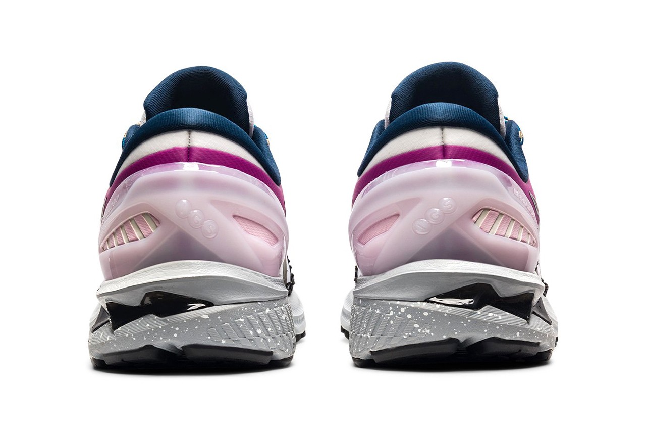 此次联名是两个品牌的第五次合作,选择了拥有极佳的舒适脚感和良好支撑的亚瑟士当家跑鞋 GEL-Kayano 27。