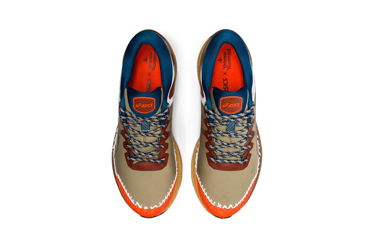 鞋身侧面亚瑟士的 Logo 上方加入了 Vivienne Westwood 的 Logo,点名联名身份。