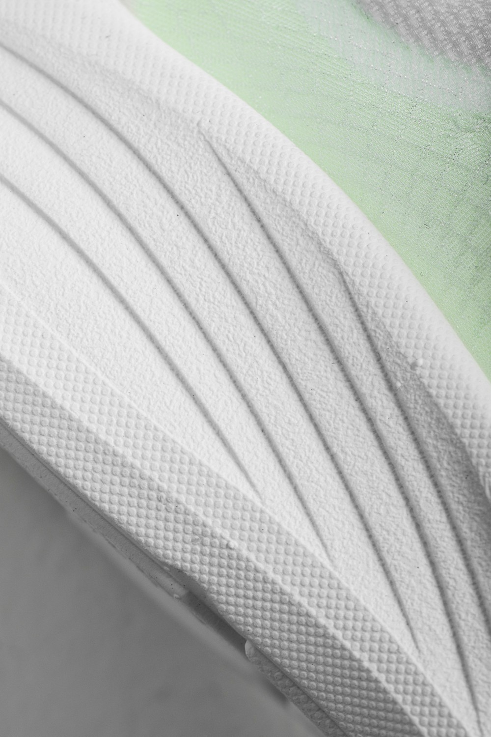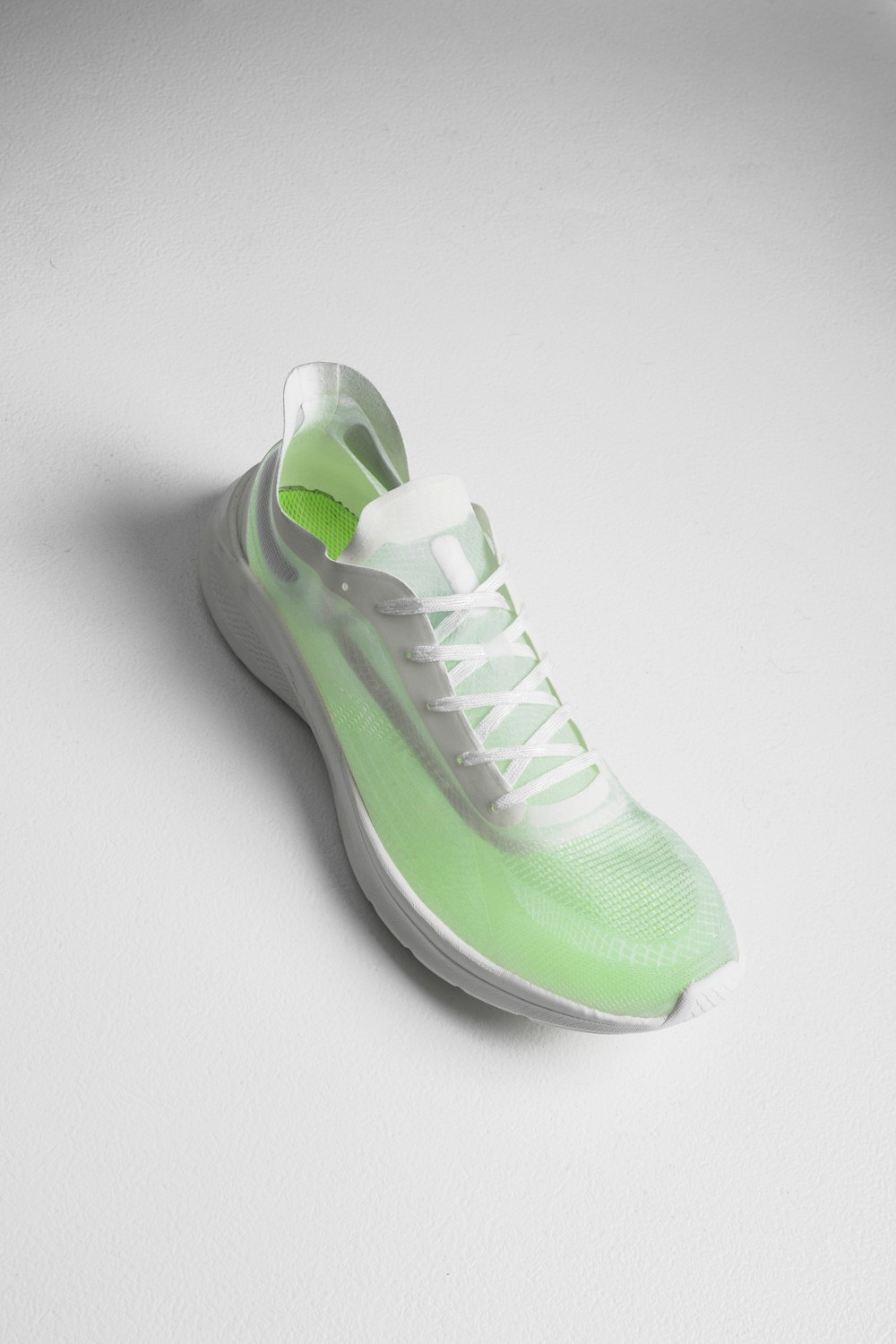 鞋面完全采用透明 MONO 纱线打造,轻薄、透气而且不会吸湿变重,越来越多跑鞋应用这种材料。