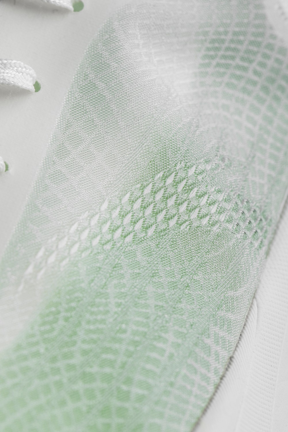 鞋面纹理及 Logo 等细节均以纱线织法变化呈现,最大限度减重。