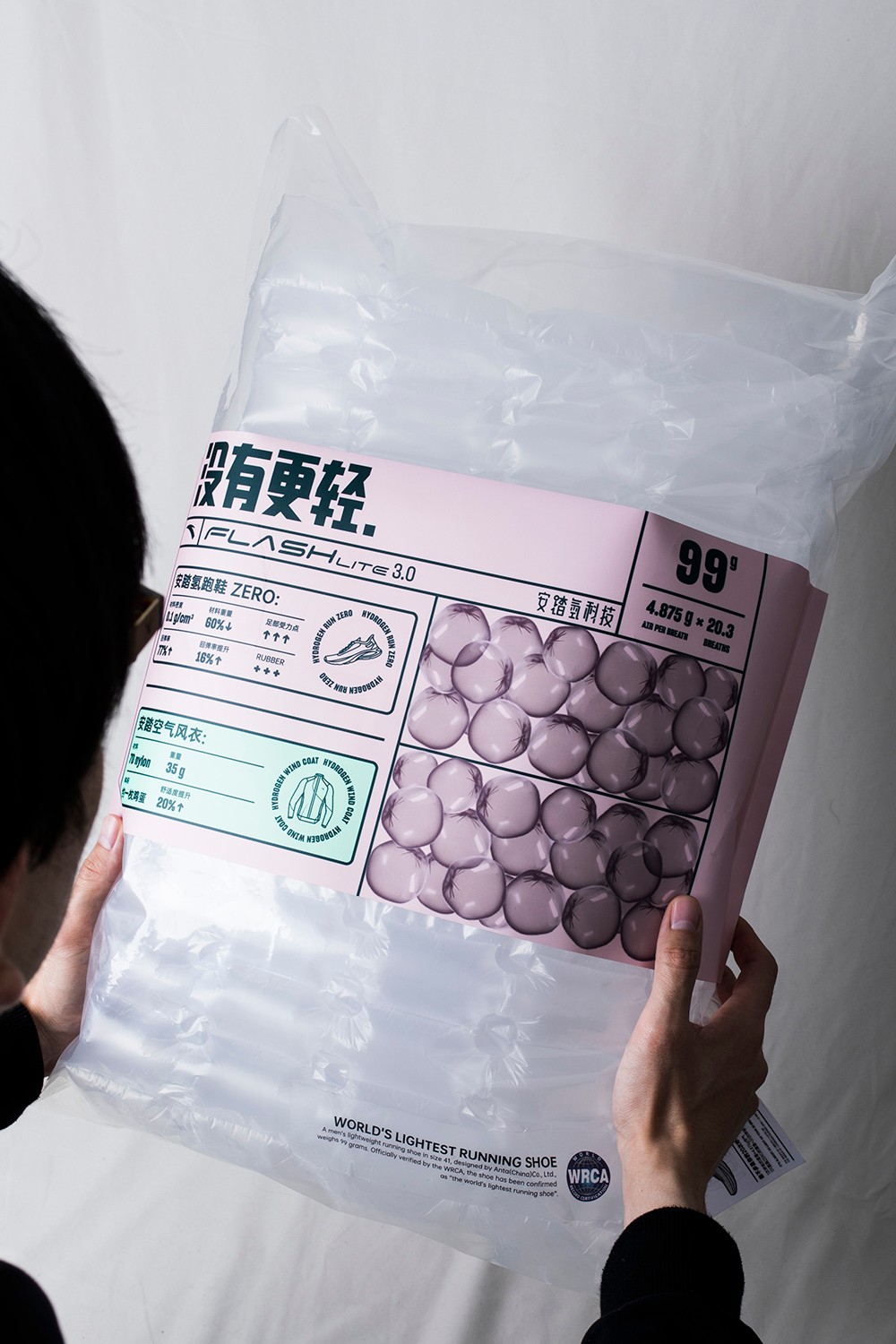 去年,安踏的空气风衣创造了世界纪录,而这次氢跑 Zero 鞋款也终于凭借这离谱的轻量,得到了 WRCA 世界纪录认可。
