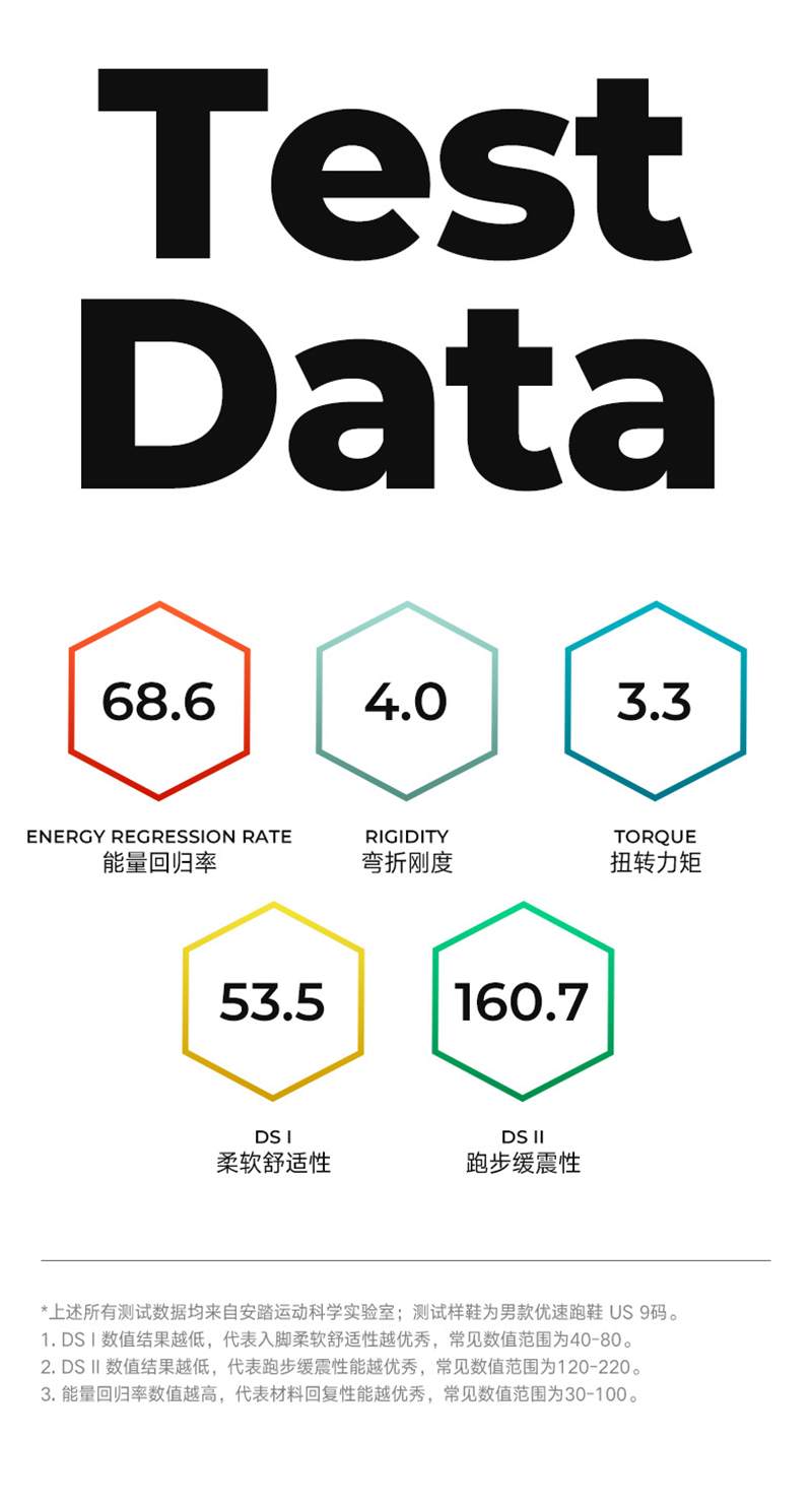 同时根据安踏大量测试数据得知,中底在经历四万次冲击后仍能保持良好的缓震性能。