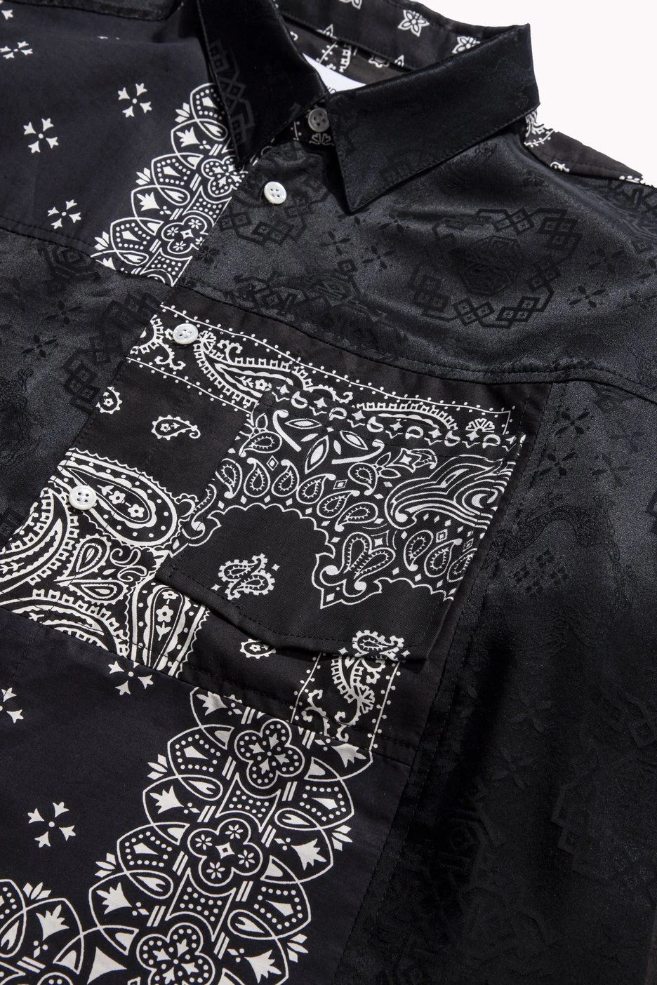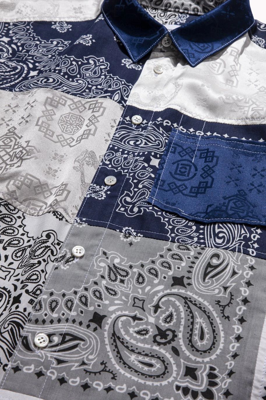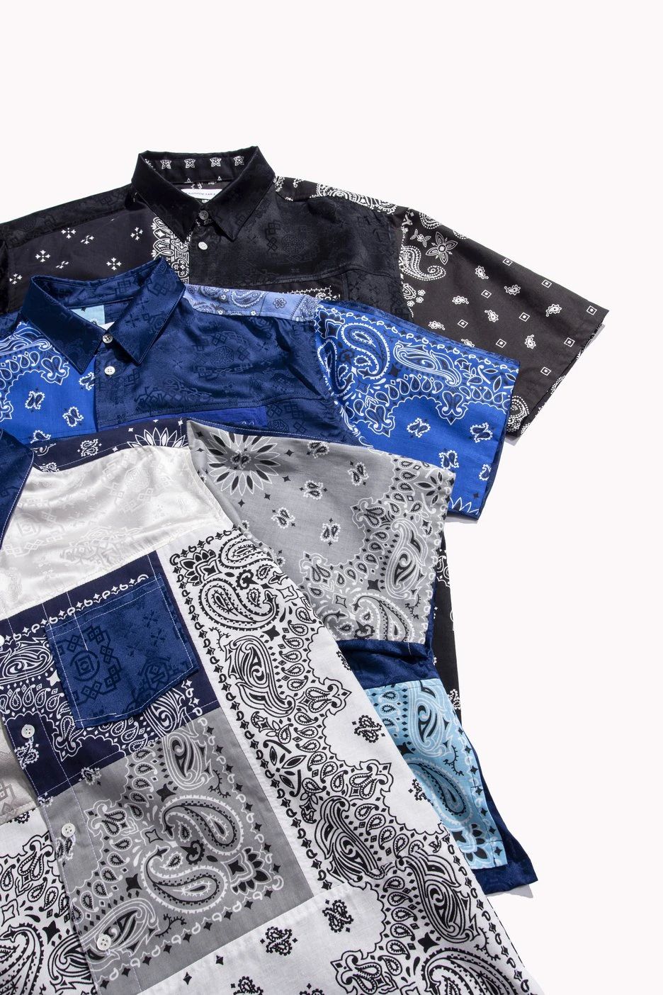 值得一提的是该联名全部由人工制作,MIYAGIHIDETAKA 主理人宫城秀贵的团队将亲自收集的腰果花方巾与 CLOT 的丝绸印花材质缝合拼接,因此可以说每件衣服都是独一无二的。