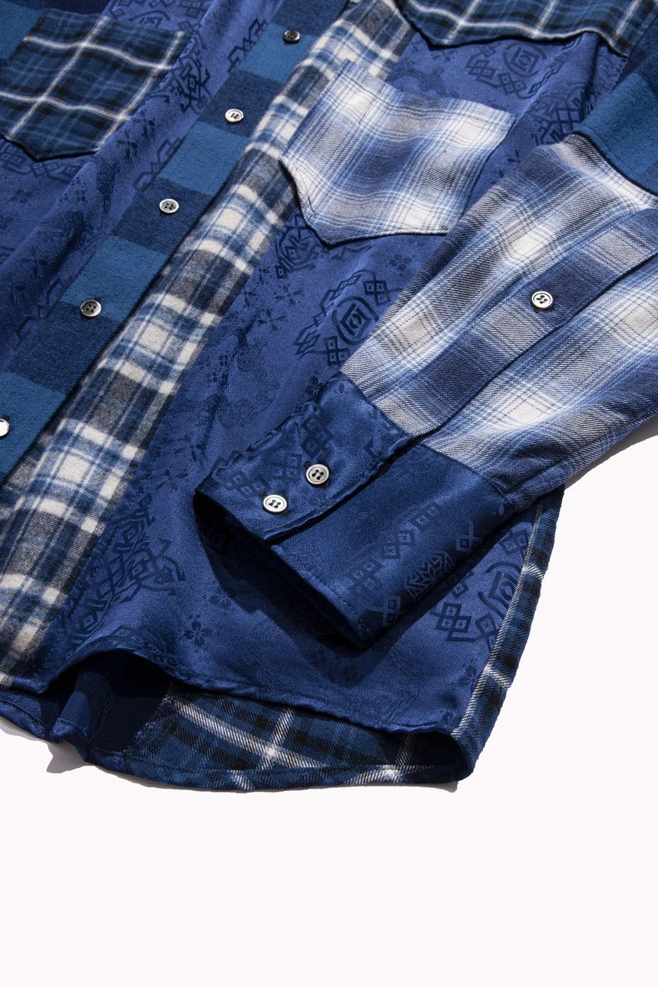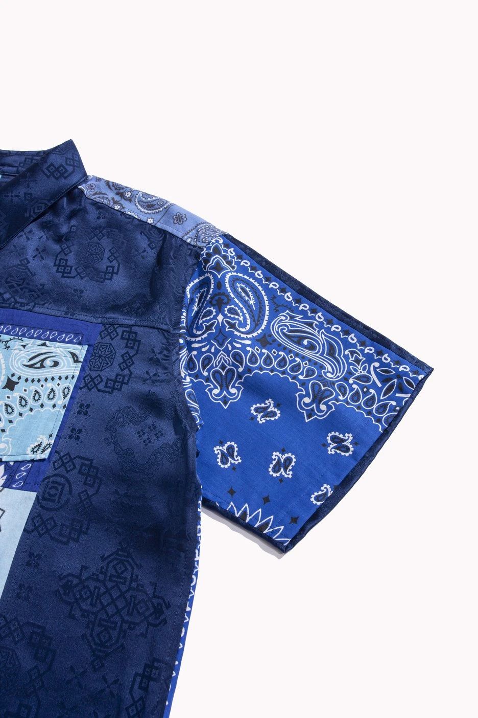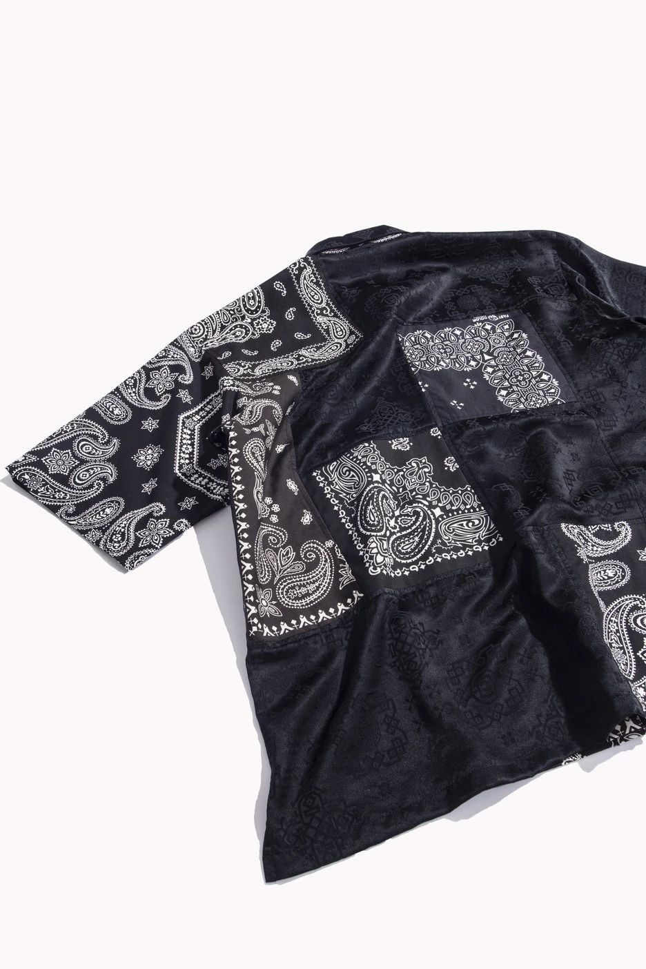 通过 MIYAGIHIDETAKA 标志性的拼接设计,将 CLOT 的丝绸融入其中,将两个品牌的特色巧妙结合,彰显联名身份。