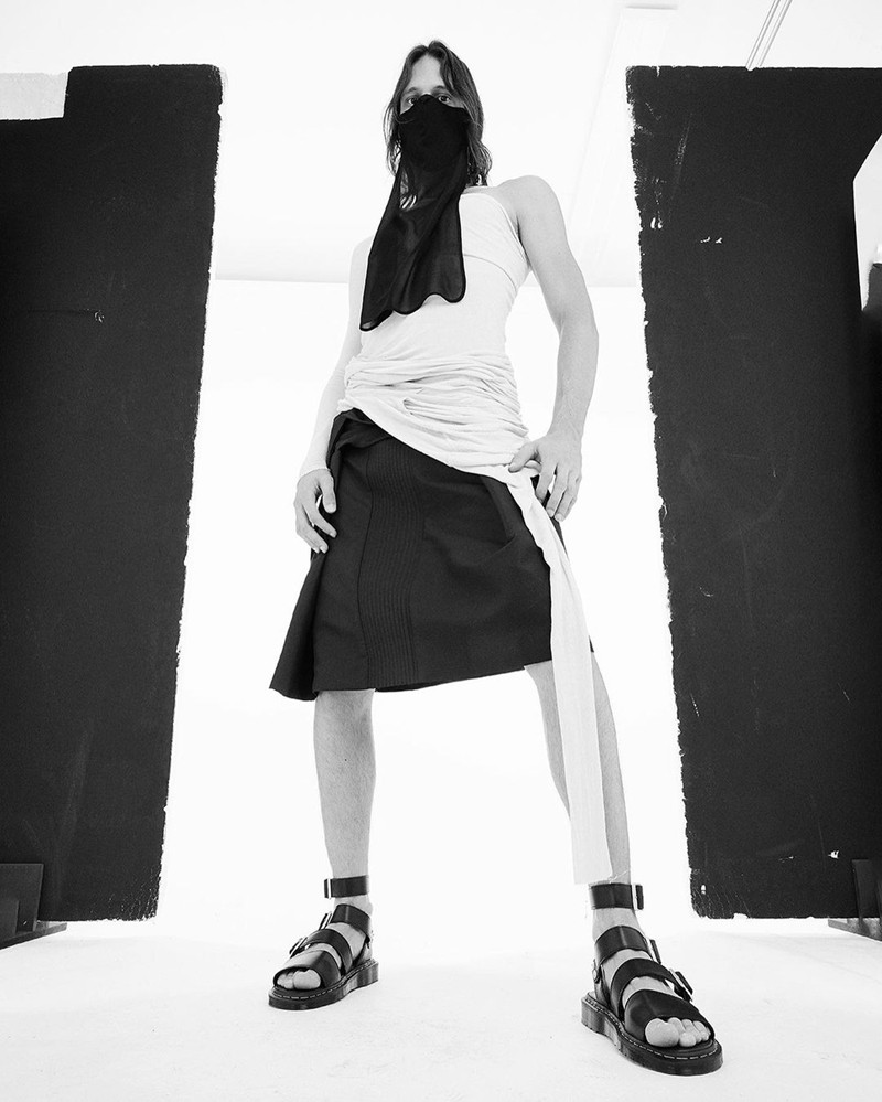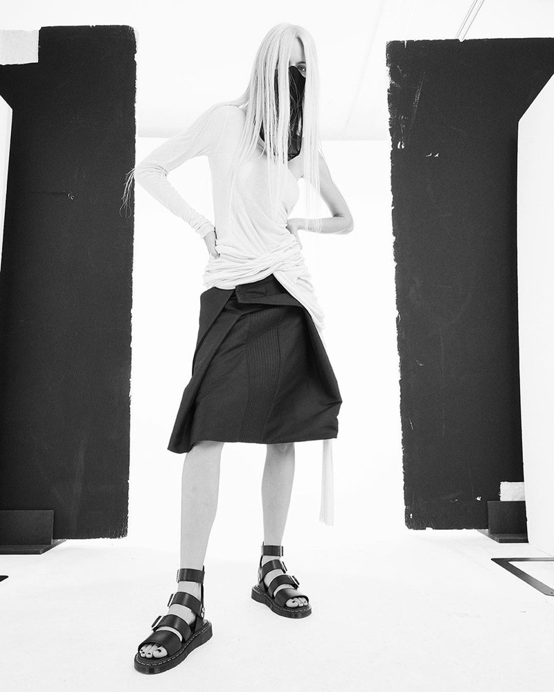 凉鞋以四个绑带组合而成,再加上 Dr. Martens 经典的外底,既保留有马丁的特点还带有 Rick Owens 特色。