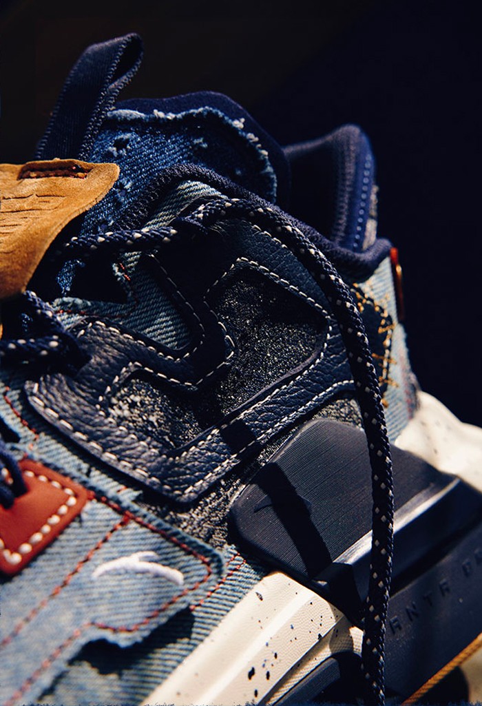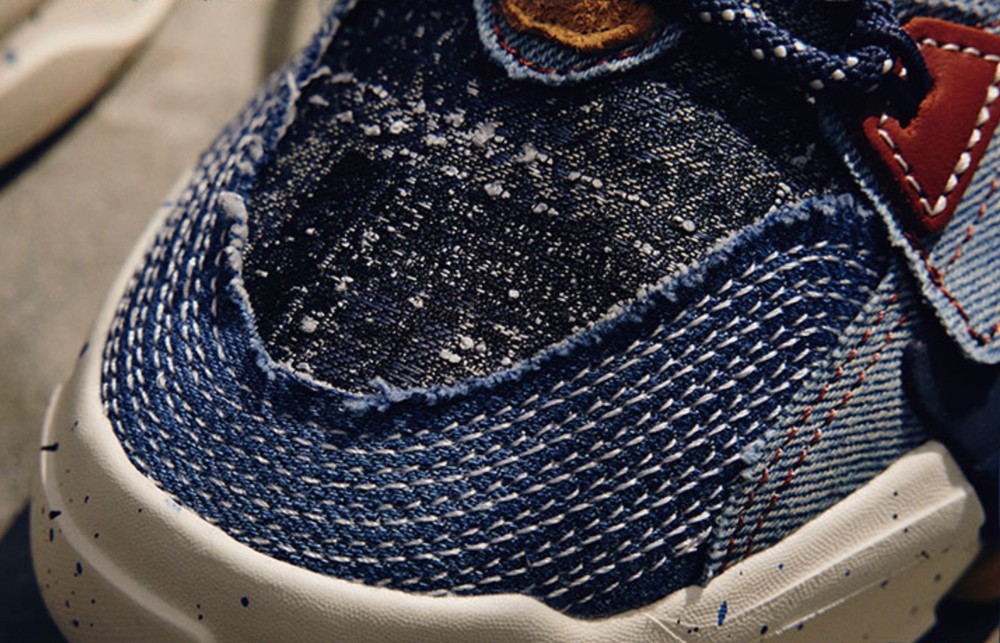 整双鞋的鞋面使用拼接丹宁布搭载,因为工艺原因每双鞋的裁切位置不同,虽然看起来都一样,但花色纹理都有着细微的差别,可以说每双都独一无二。