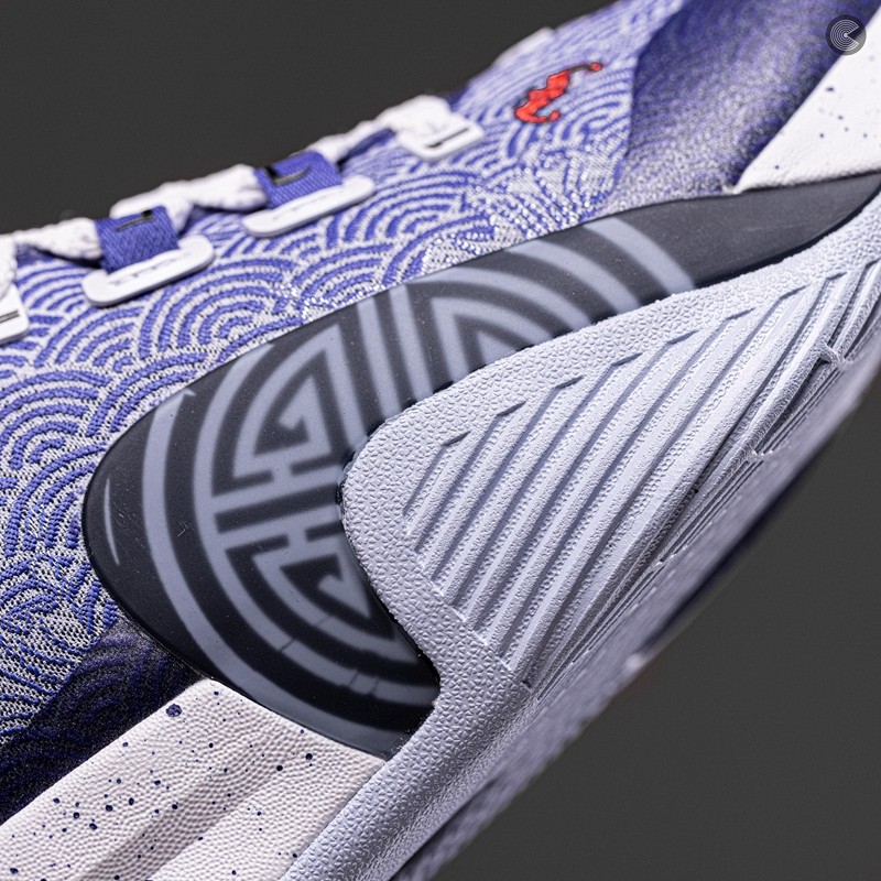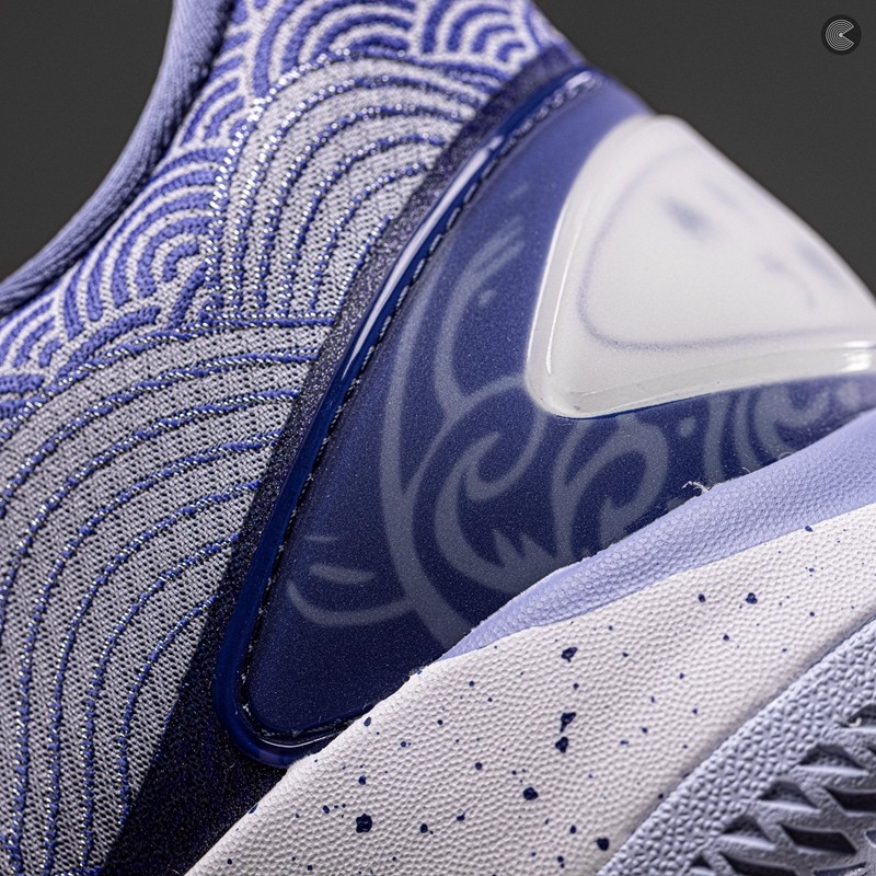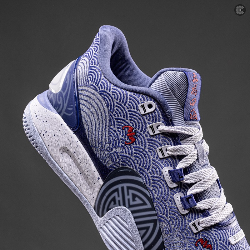 最后一双被命名为「五福四海」,深蓝色的鞋身搭配上白色的浪花造型,呈现出的视觉效果既低调又不失细节。