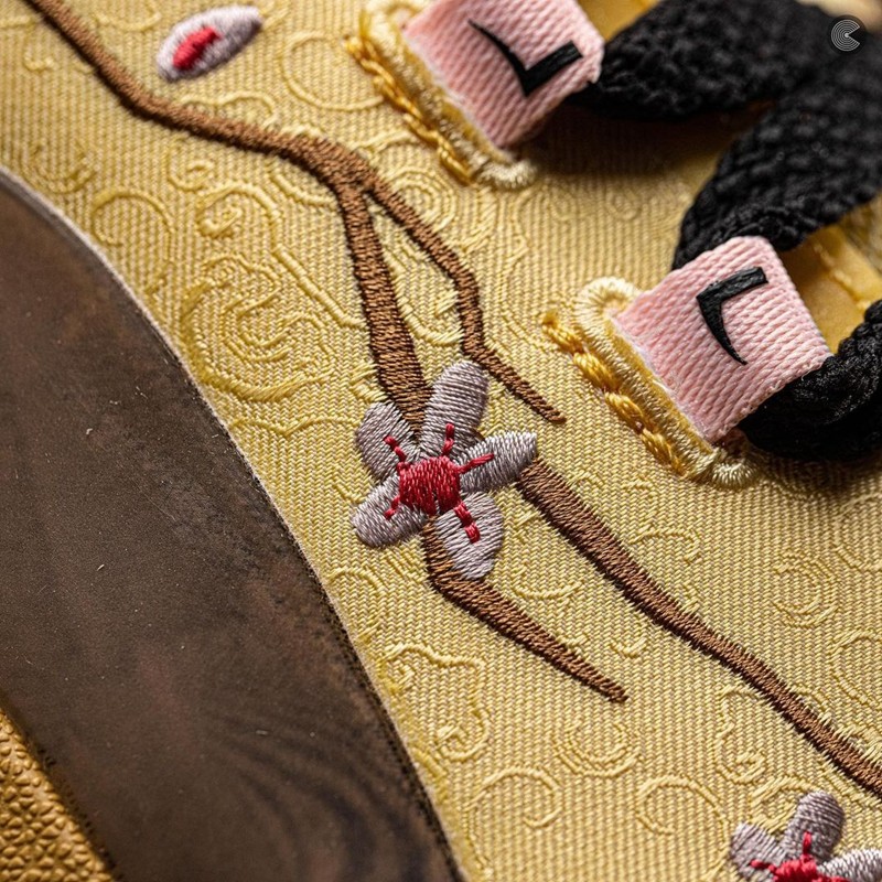 第一双称之为「喜上眉梢」,采用黄色为主调,侧身处点缀喜鹊与梅花树造型,视觉效果十分喜庆。