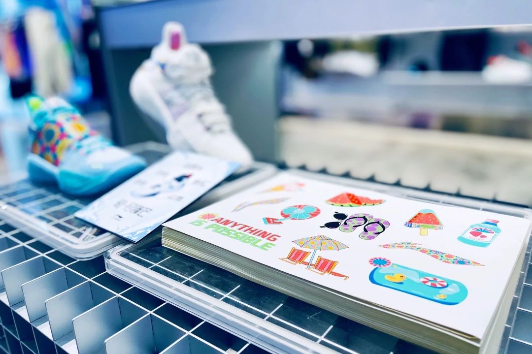 同时巨大的李宁 Logo 以冰淇淋造型呈现,凸显主题的同时,让夏日球鞋穿搭更具活力。