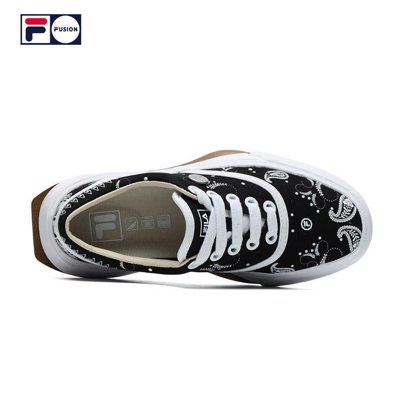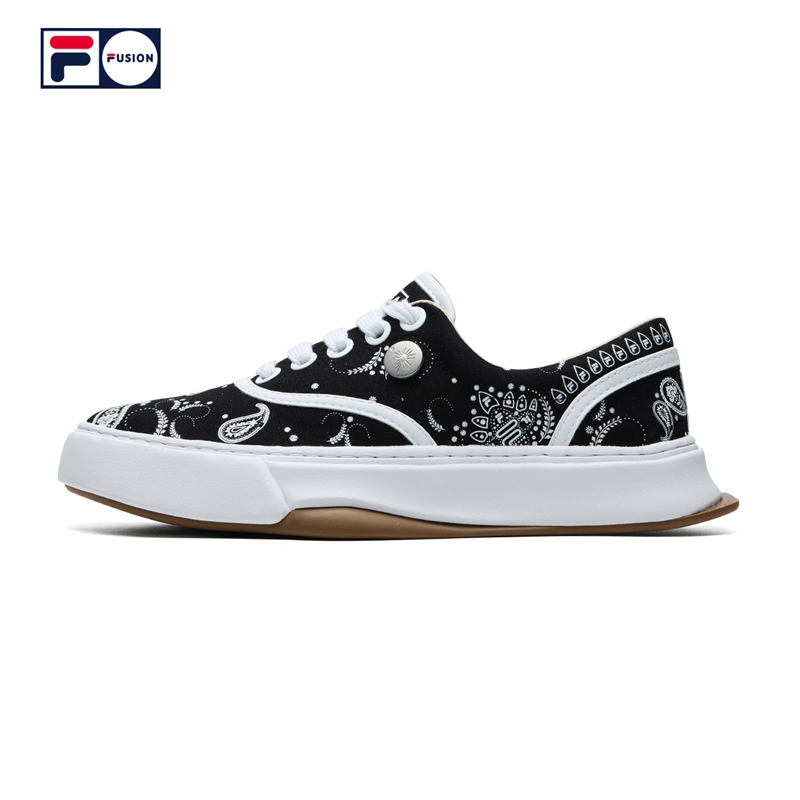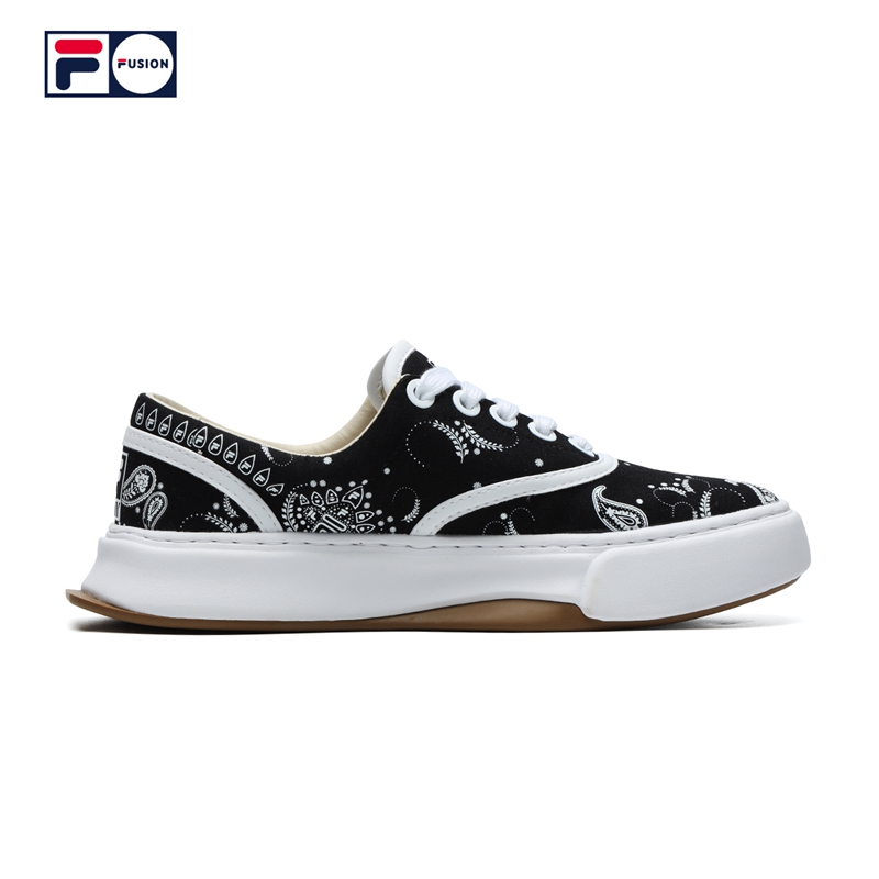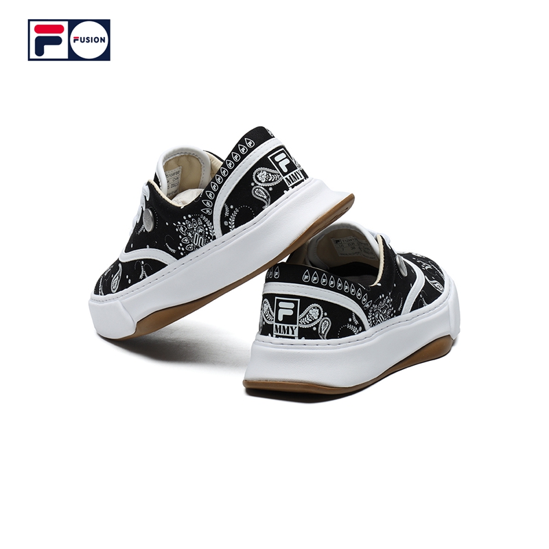 整双鞋以帆布材质打造,黑白双色的鞋身缀以当下超火的腰果花造型,并带有超多的 FILA Logo,视觉效果简约不简单。