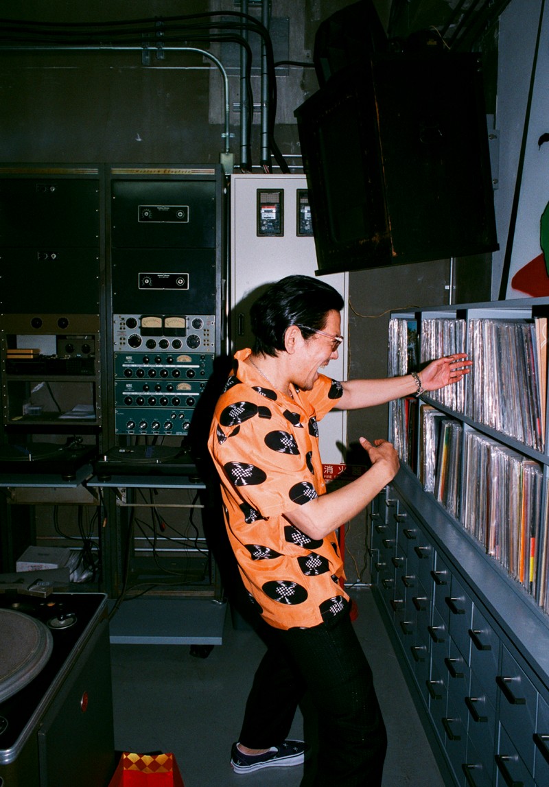 三款梭织短袖衬衫使用醒目的白、蓝、橙三色打造,与鞋款相呼应的印有棋盘格黑胶唱片图案。