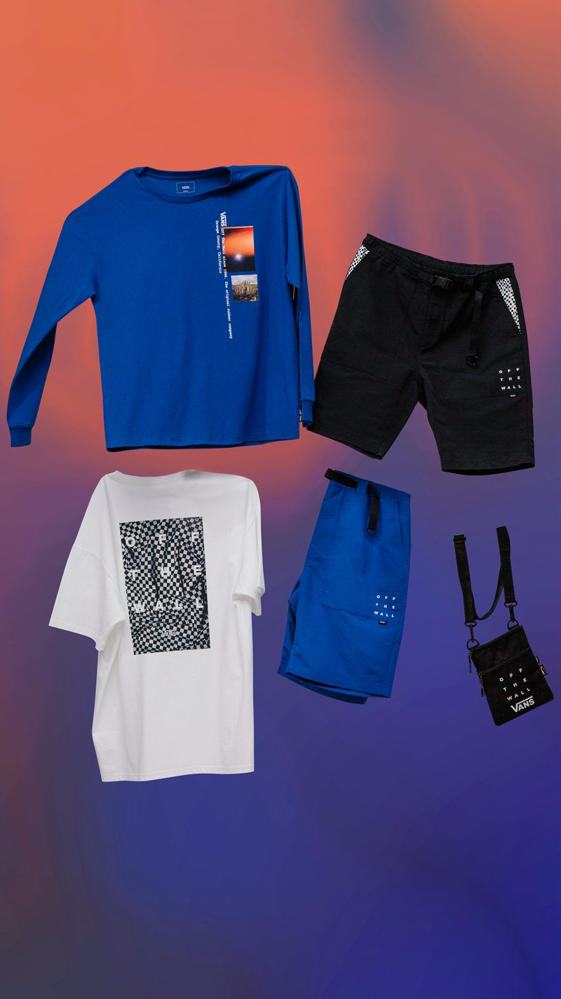 Fivemonker 的设计则较为简单,将 “Jump Out” 和 “Step Forward” 字样印于 Vans T 恤、背包和帽子上,以此激励大家继续前进。