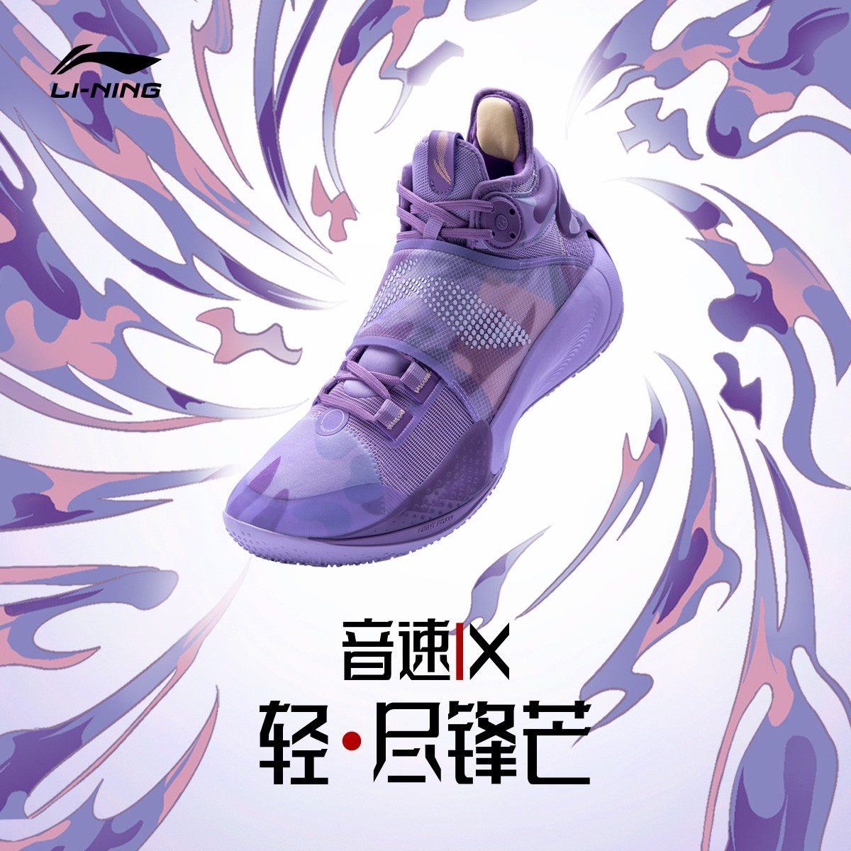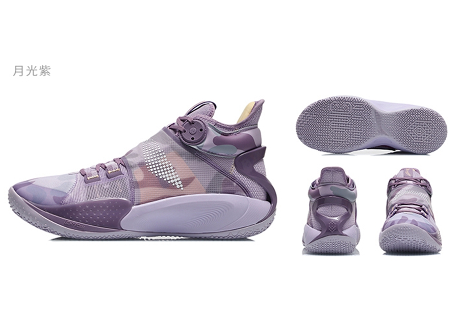 李宁音速系列凭借良心的配置以及丰富的配色,收获众多球鞋爱好者的超高评价。 近日,李宁音速 9 又迎来了全新月光紫配色。 鞋面整体使用透气网眼材质打造,并在鞋头处加以热缩膜,轻量化鞋身的同时加强脚趾保护。 从中底开始围绕脚背处一圈的绑带设计,为运动时脚部的稳定性提供保障,同时具有更强的包裹感。 中底侧墙前部及后跟 TPU,为脚踝和足跟提供保护及有效的支撑。 月光紫与紫色迷彩搭配,有效区分鞋身结构,丰富视觉效果。