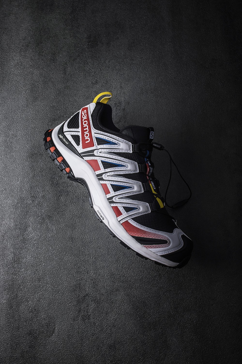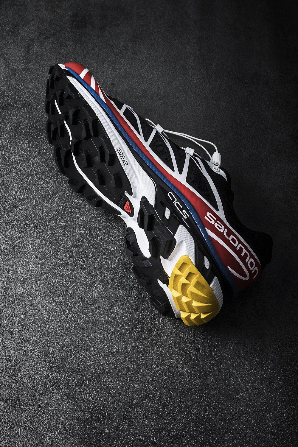 大面积红色,搭配蓝、黄两色点缀,就是 Salomon 标志性的三原色主题。