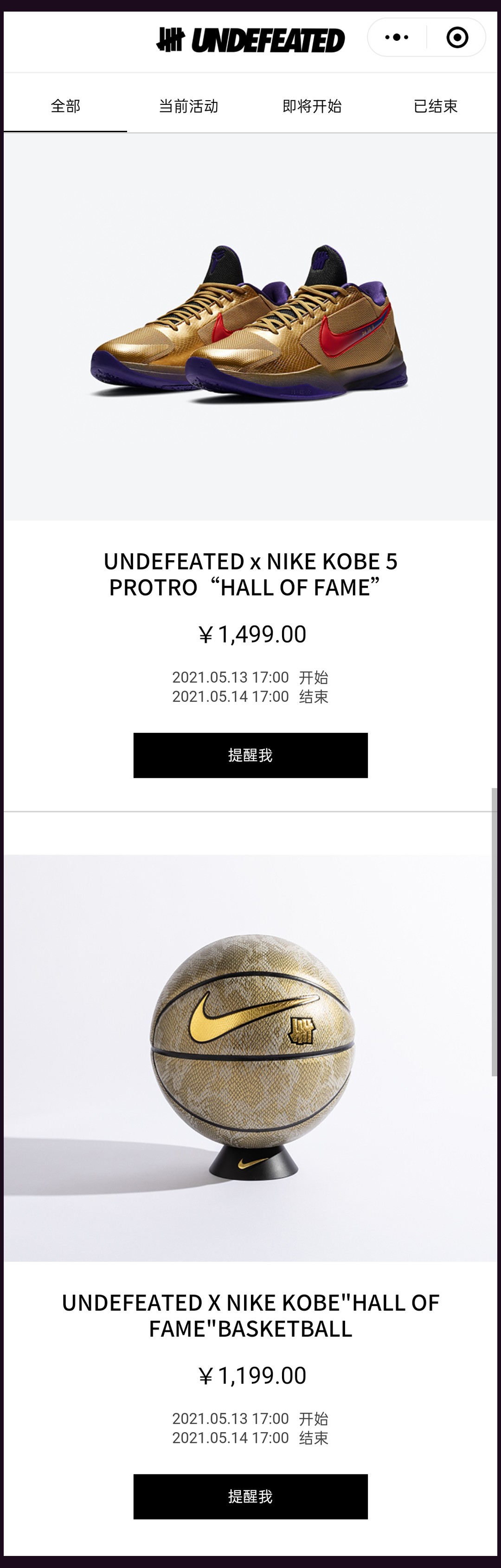 目前球鞋和篮球均已在微信「UNDEFEATED」小程序上线预告。