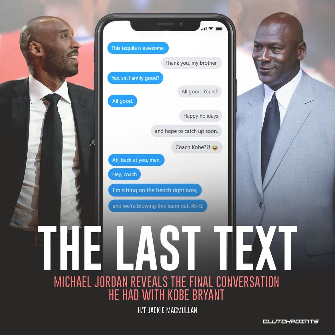 对话的内容先是科比对乔丹赠送的龙舌兰表示赞誉,随后双方问候彼此近况以及家庭。