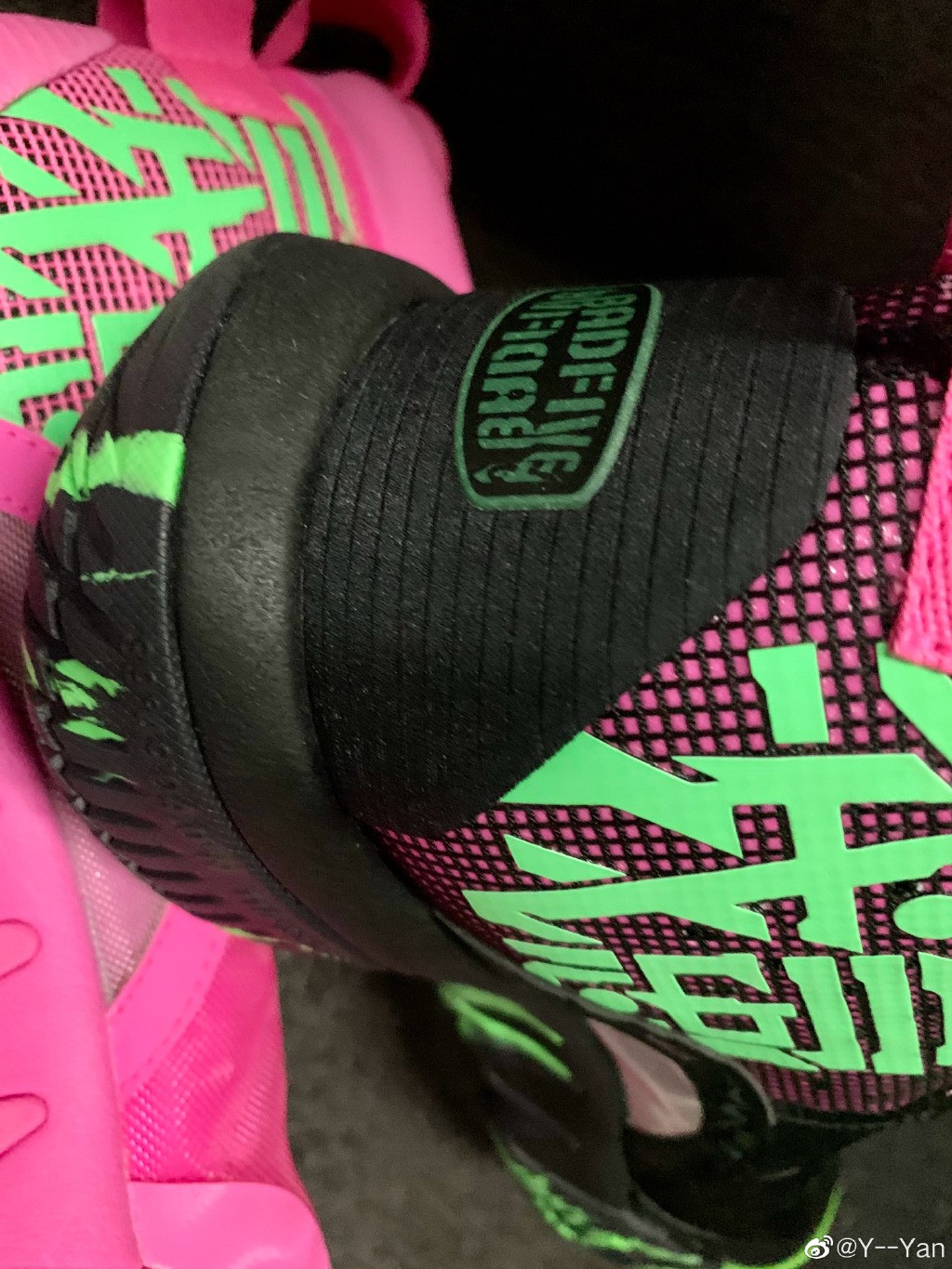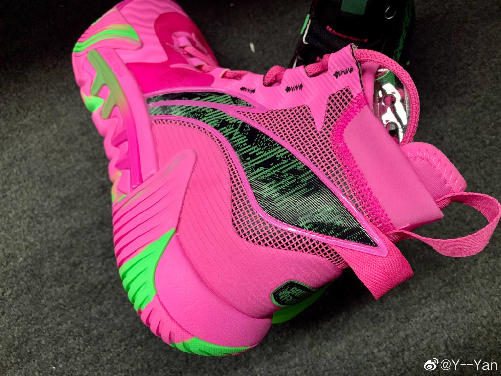 两款配色分别以黑色和亮粉为主色调,配以荧光绿点缀,这配色真的很赛博了。