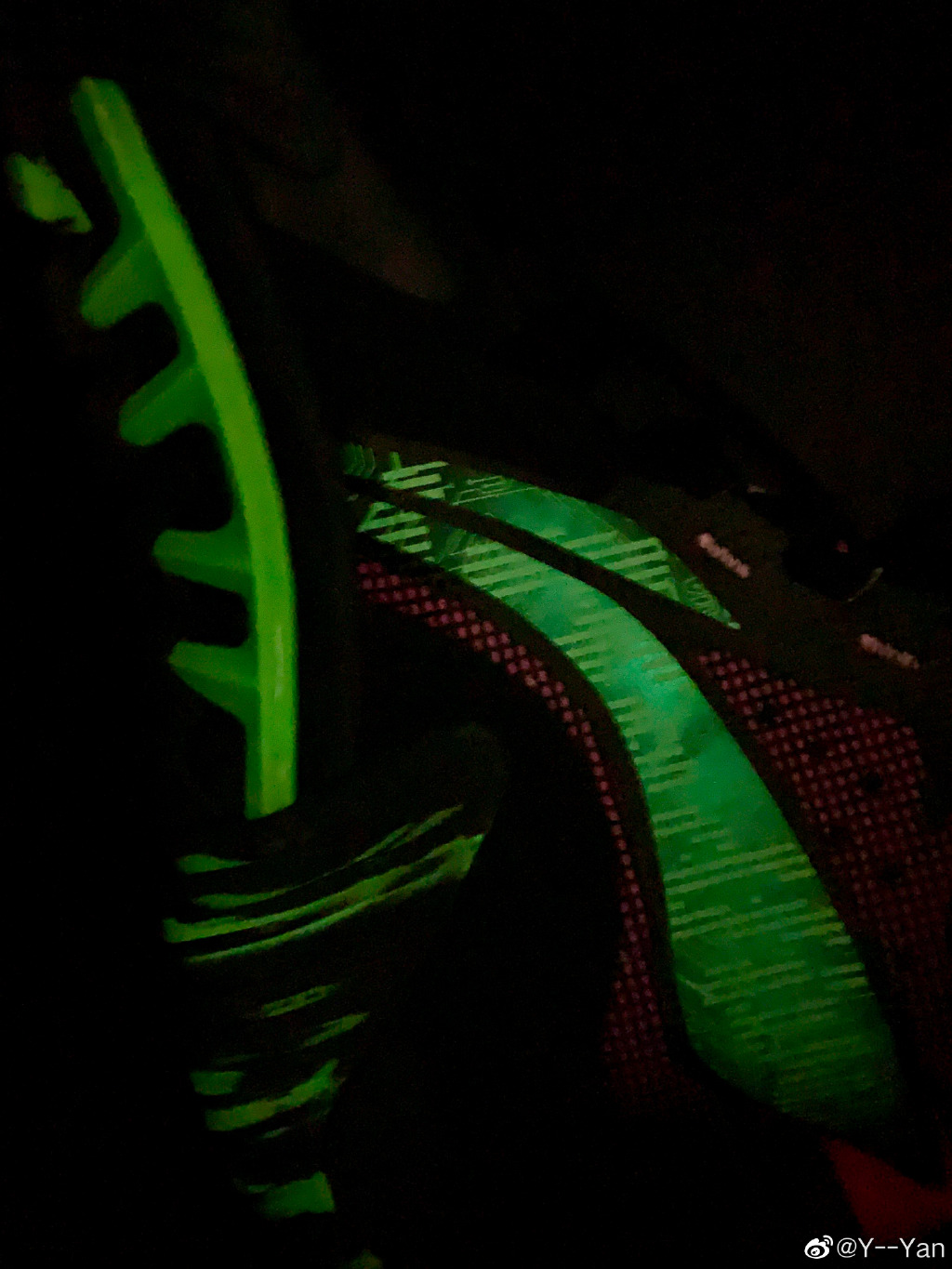 李宁 Logo 采用闪卡设计,从中底到鞋面,还有多处夜光材质点缀。