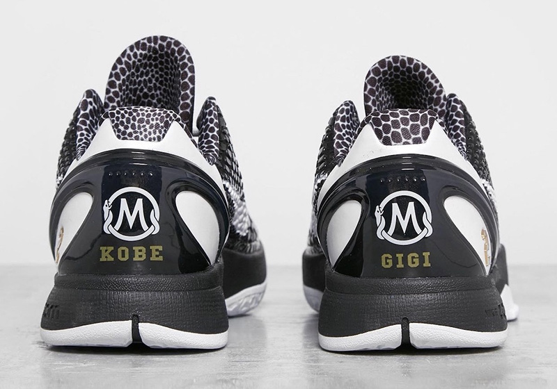 最大亮点在于后跟位置点缀曼巴体育基金会的醒目 Logo,并在左、右分别印有科比与女儿 Gigi 的名字,后跟外侧同样采用金色点缀 Gigi 的球衣号码 #2。