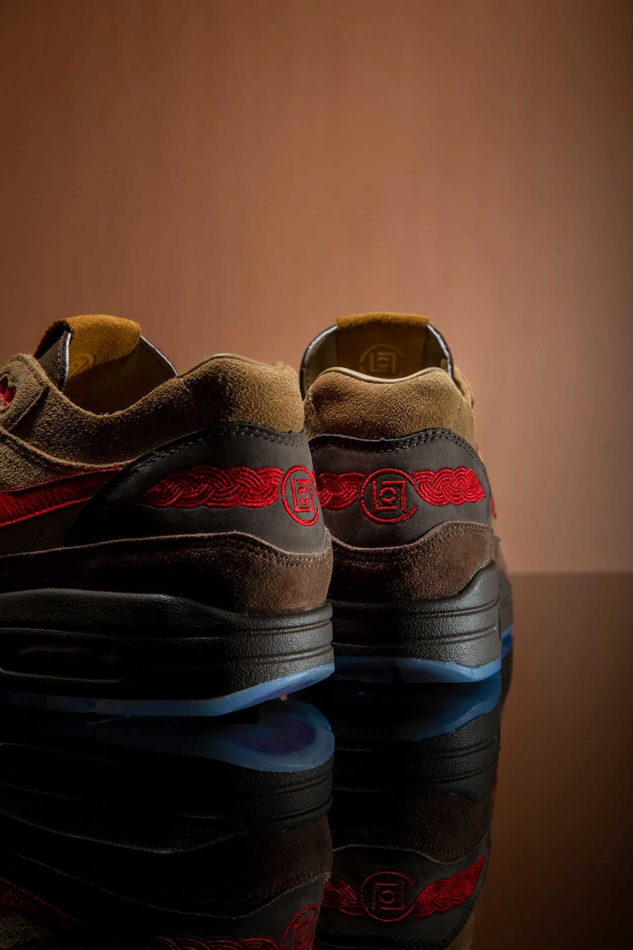 随后冠希趁热打铁、持续输出,带来一双全新 CLOT × Nike Air Max 1 “Kiss of Death” - CHA 配色 。