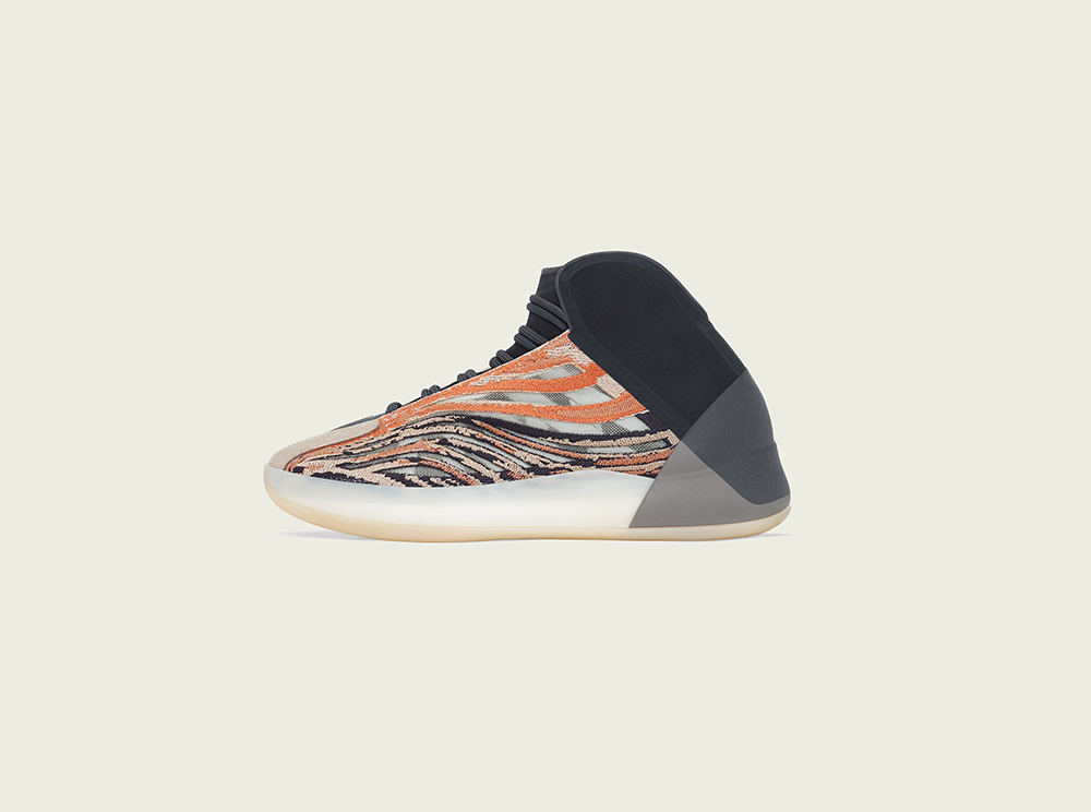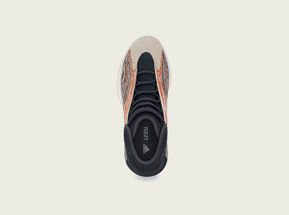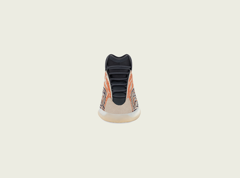 整双鞋延续 Yeezy QNTM 的造型设计,鞋面则是采用黑色以及橙色填充,带来抢眼黑橙配色风格。