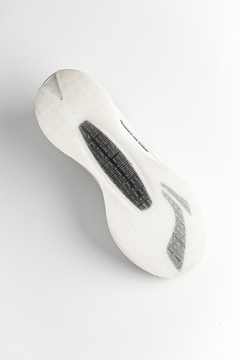 双层碳板不仅保证了稳定的支撑,又带来了强劲的推动作用,和䨻形成的弜镂空结构,造就这双绝影跑鞋。