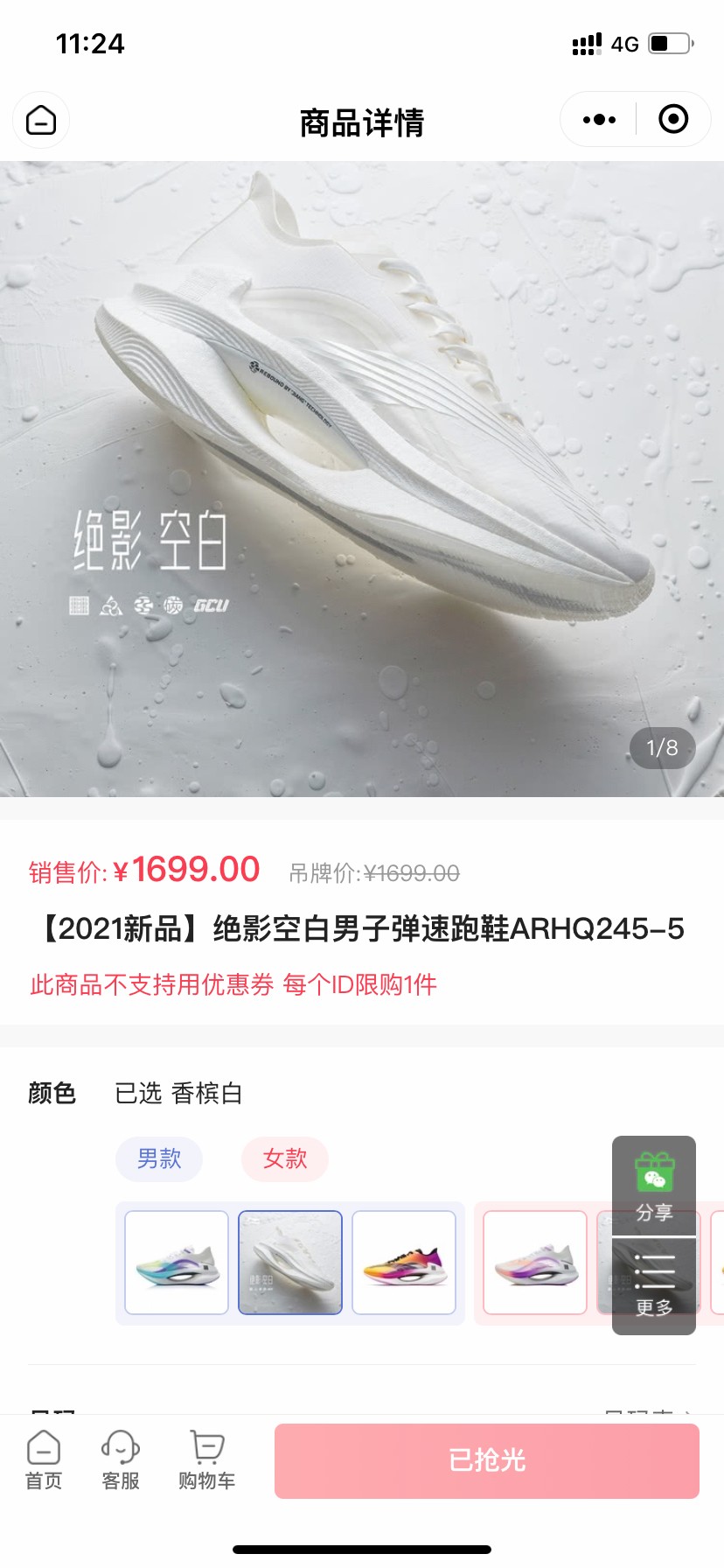 目前这双钢琴白配色的绝影已于李宁官方微信小程序发售。