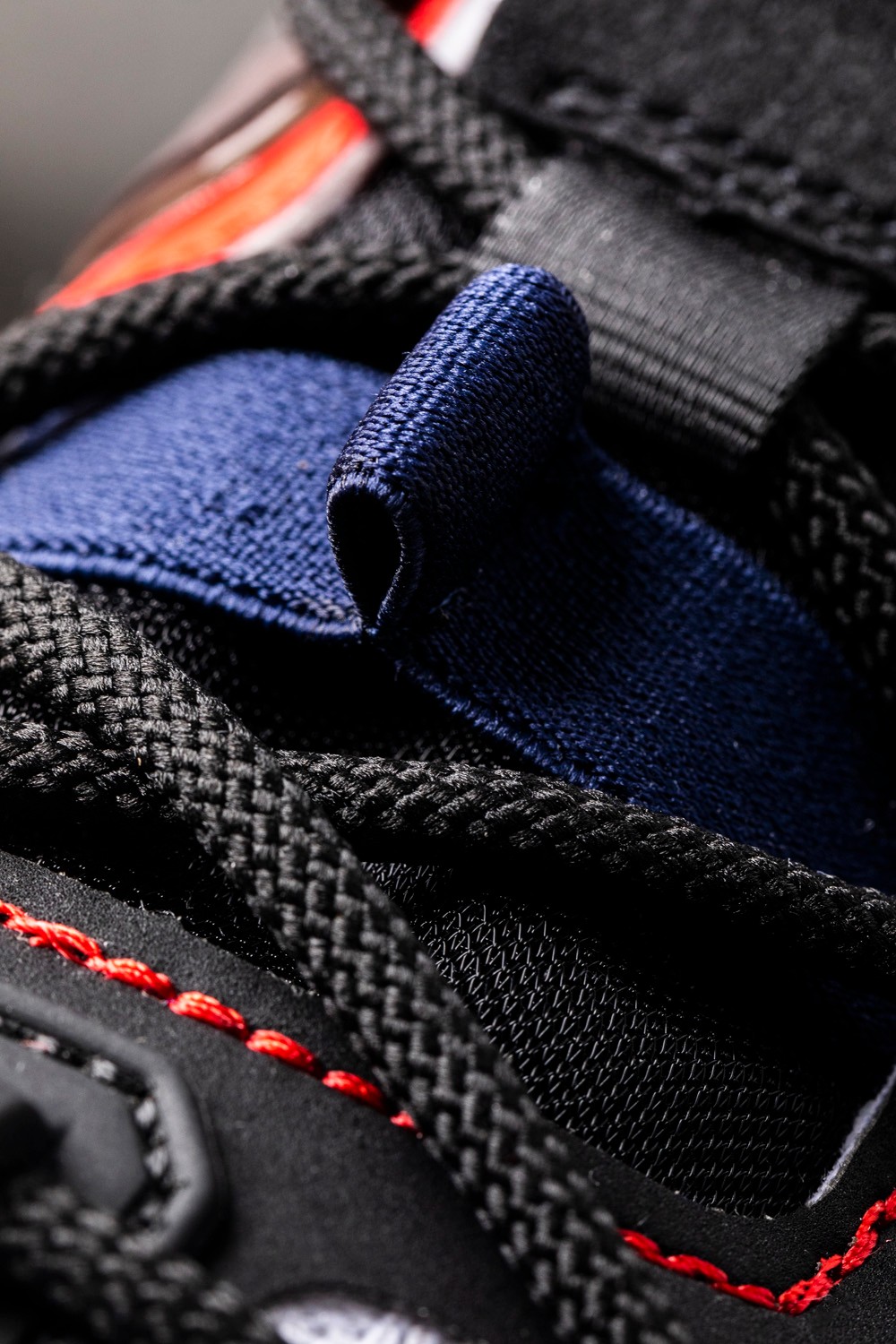 这双霸道 3.0 在鞋头处不同其他款,将保护脚趾的透明贴膜换成了浅色的丹宁布。