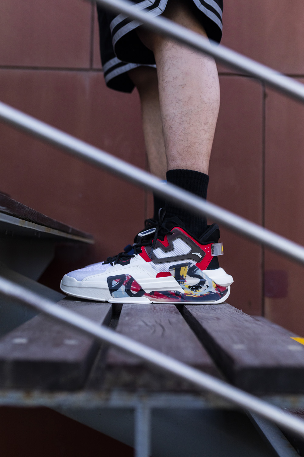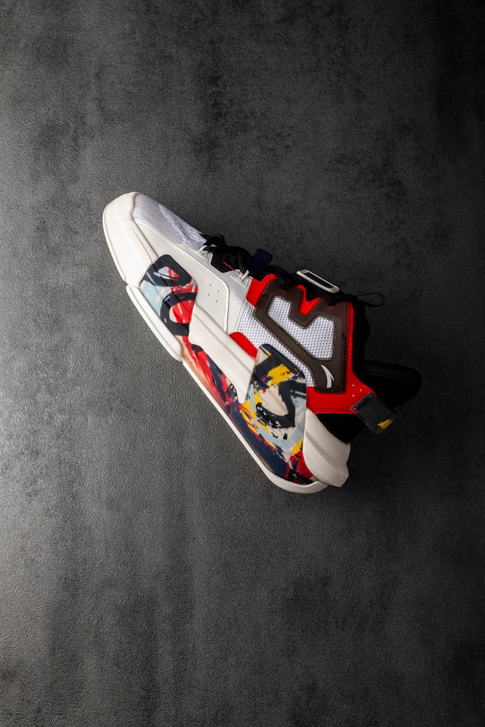 白色、红色和涂鸦图案碰撞,让整双鞋更加吸睛。