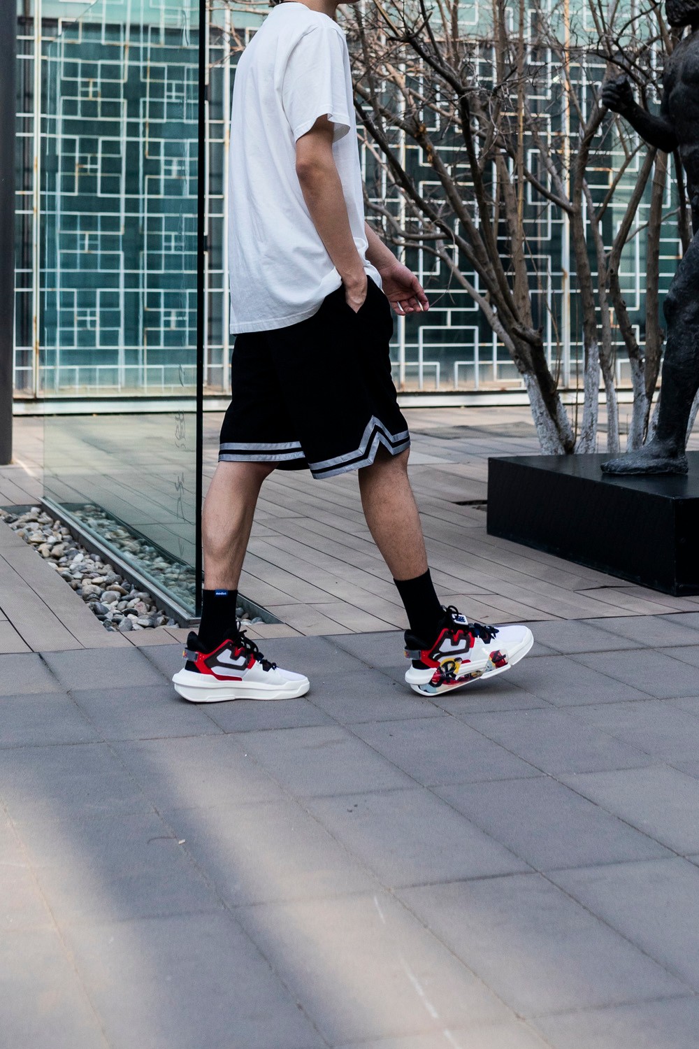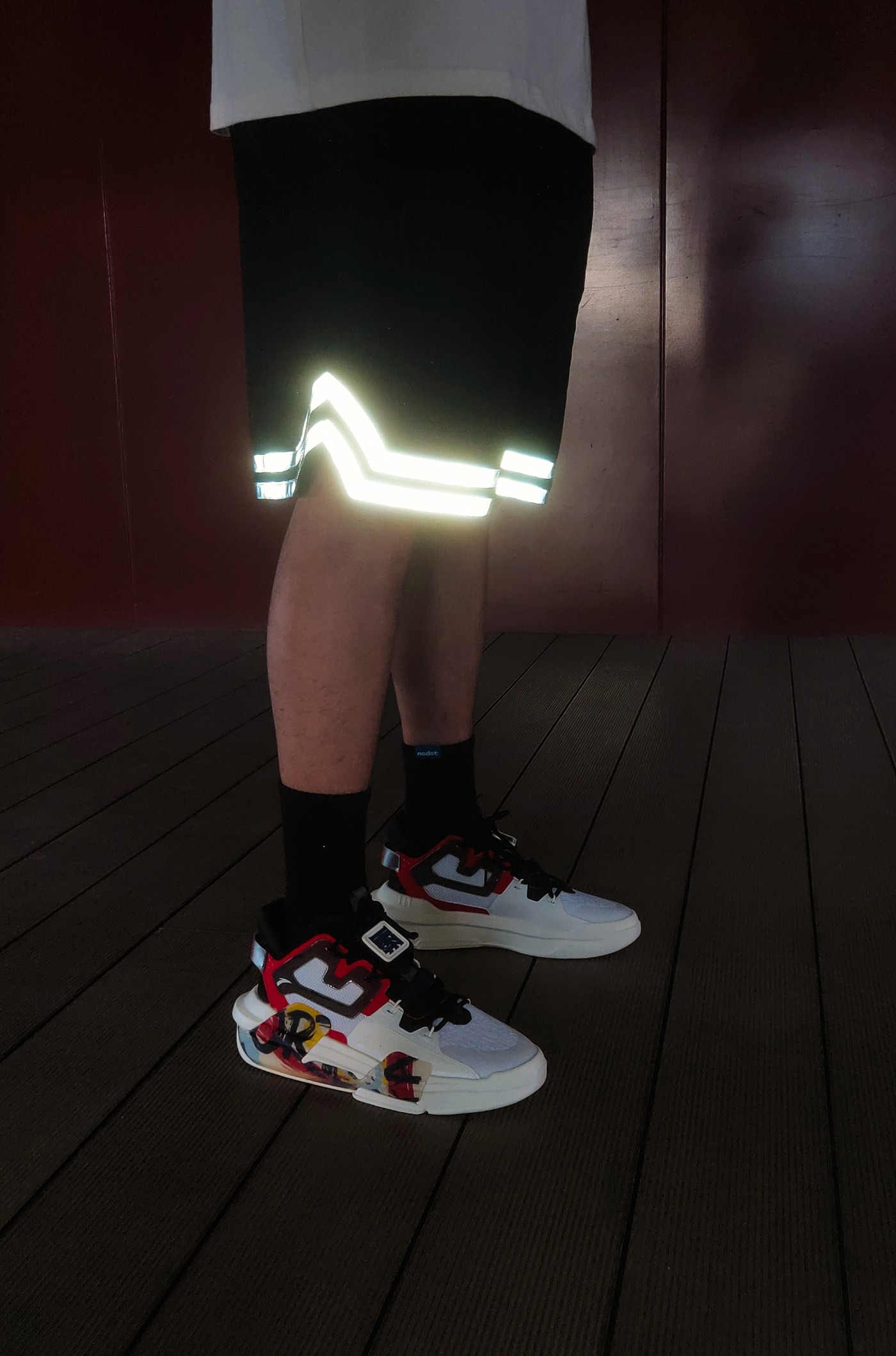 反光短裤搭配涂鸦霸道 3.0,运动气息四溢。