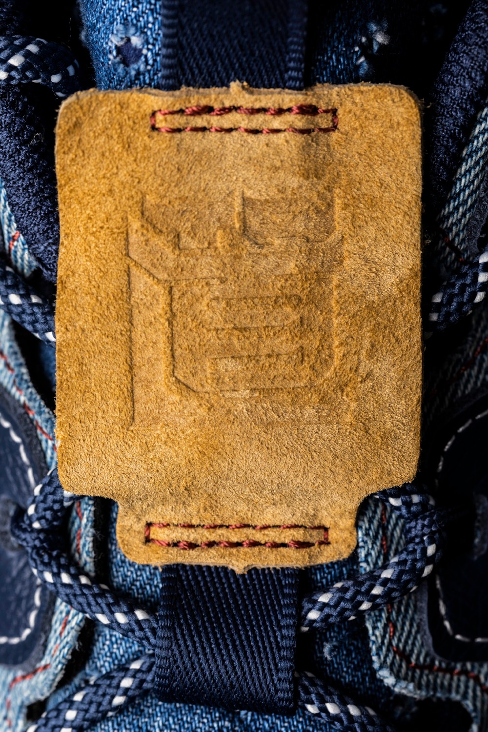 鞋舌绑带上将丹宁款的木纹纽扣换成了环形提环,立体感更强。