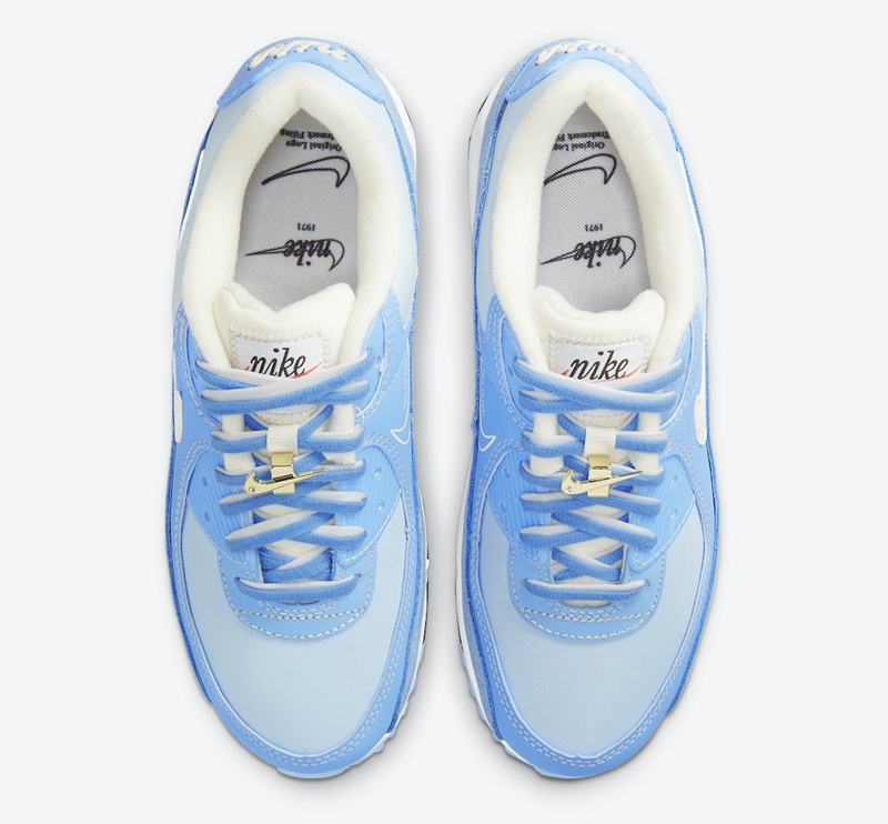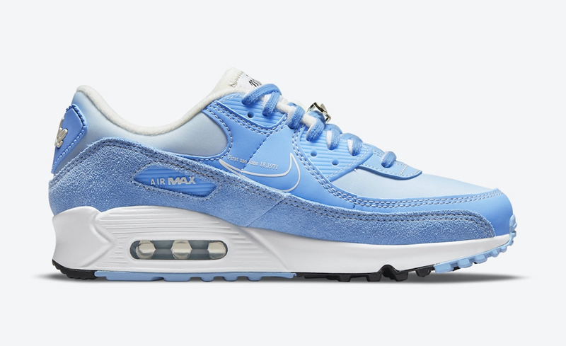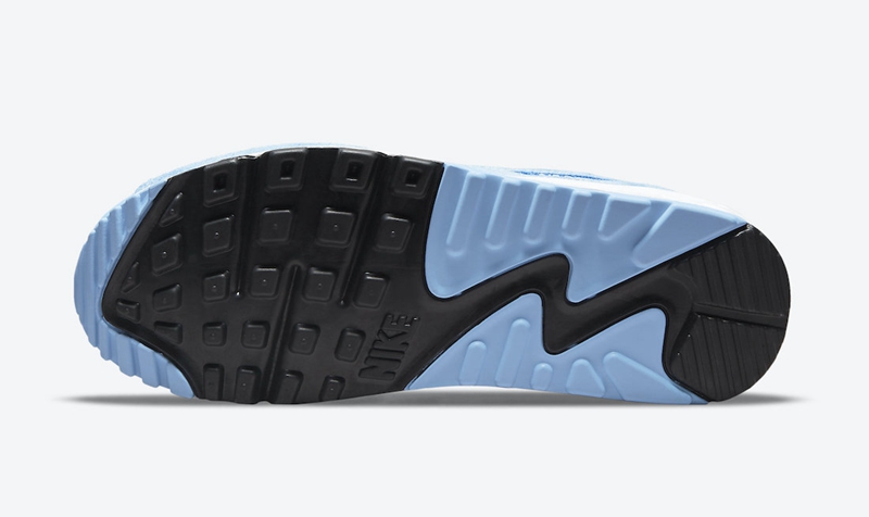 最后中底部分添加天蓝色开窗式 Air Max 气垫收尾,保证舒适脚感的同时完善整体设计。
