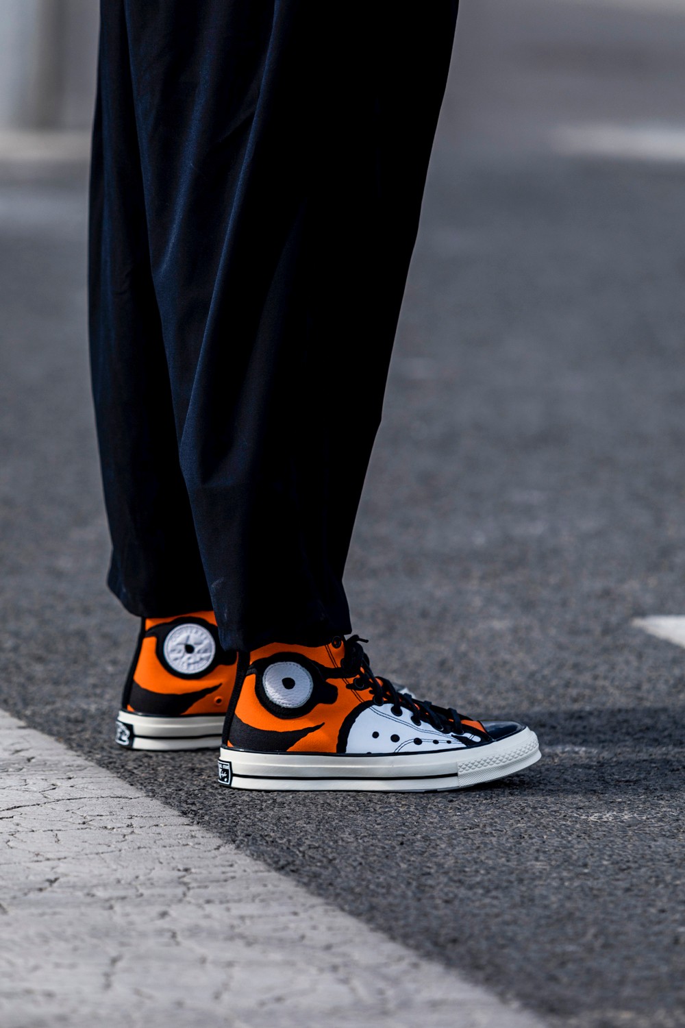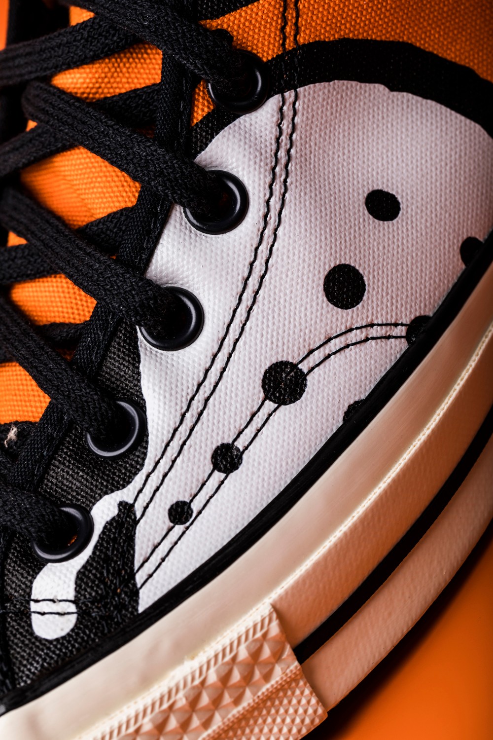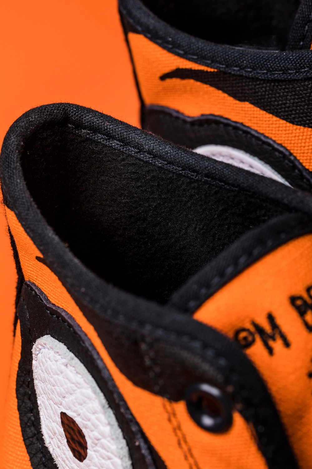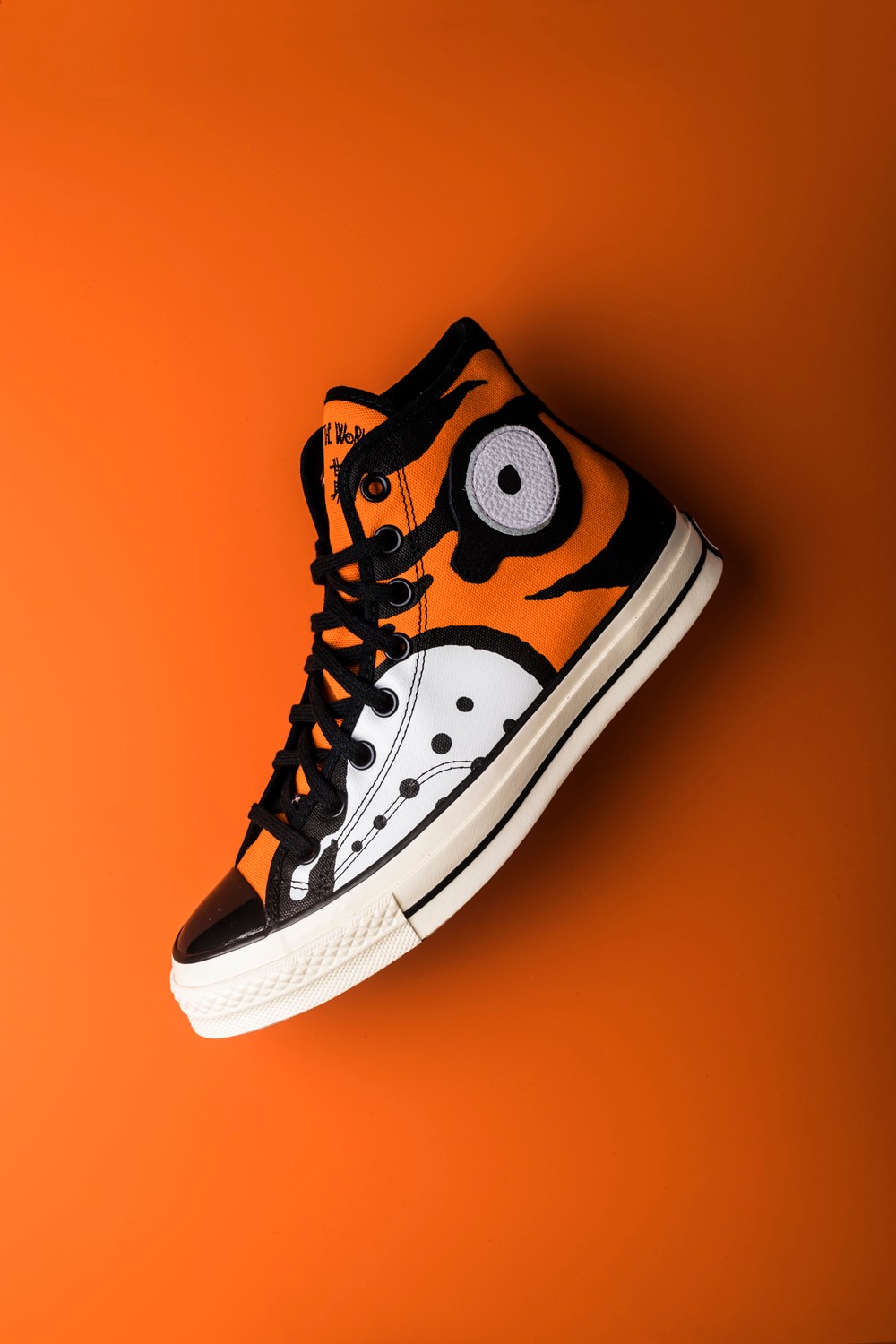 虎眼元素不仅以皮料拼接呈现在鞋帮外侧,鞋帮内侧的 Converse 星标也加入了点睛设计,成为另一只虎眼。
