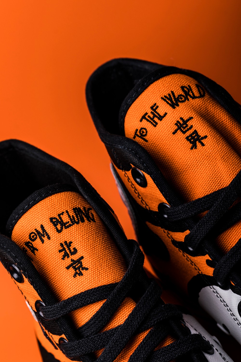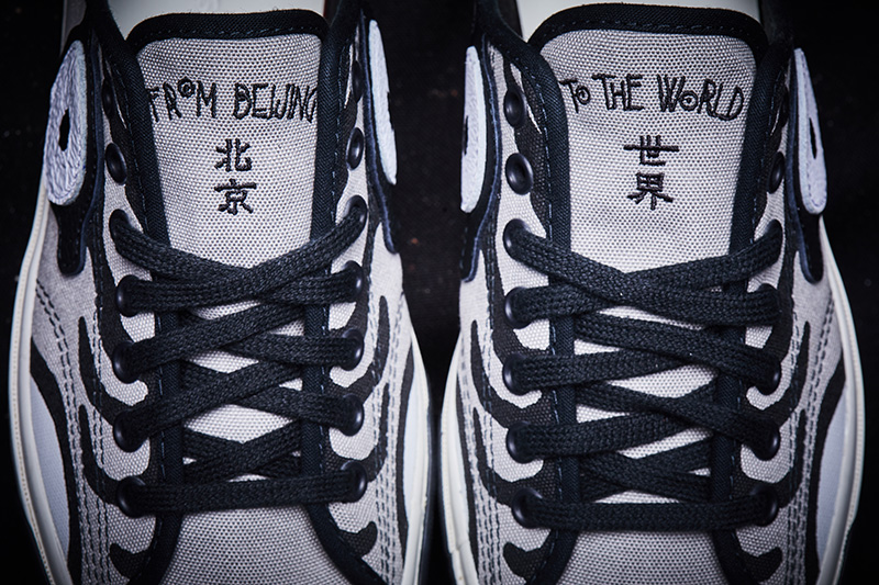 鞋舌分别刺绣北京、世界字样,组成「From Beijing To The World」口号。
