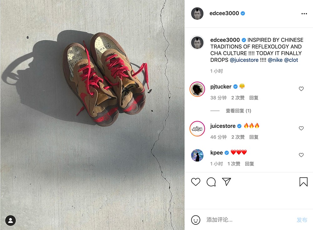 随后又在今早预告了这款鞋会在今天发售,同时介绍了茶和针灸这两大设计灵感。