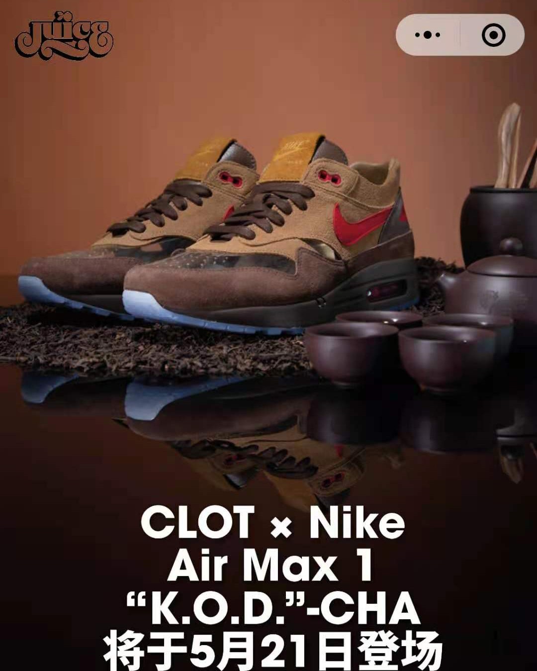 国内 CLOT 官方发售渠道「JUICESTORE商城」小程序也在今天中午 12 点发售。