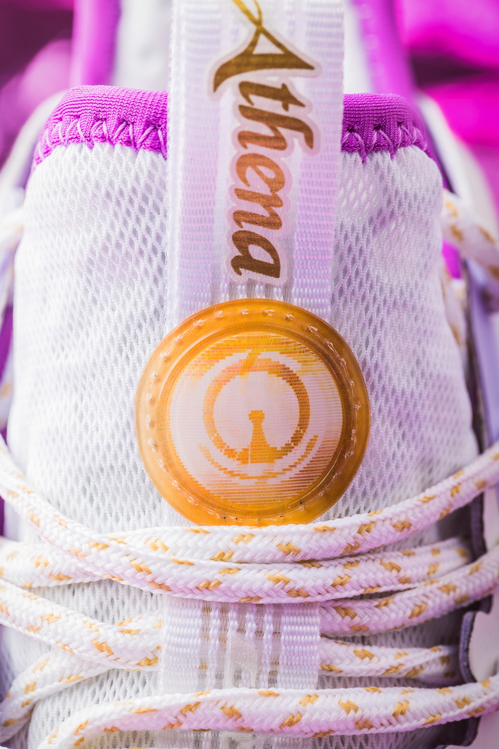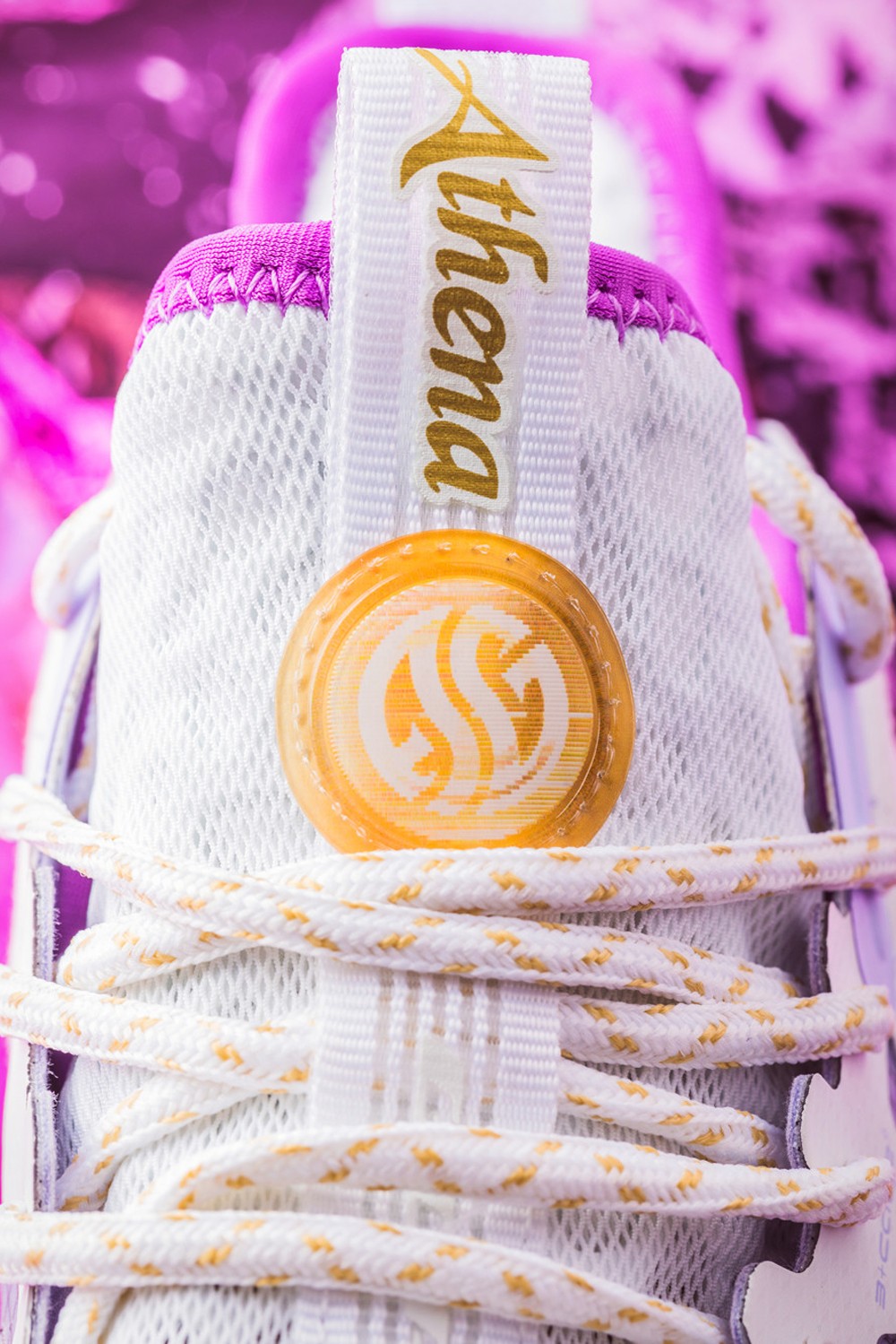 鞋舌上缀以圆形闪卡装饰,361° 和雅典娜权杖轮廓相互变幻。