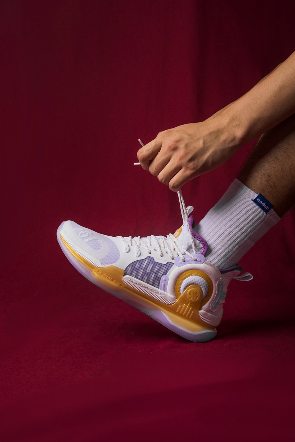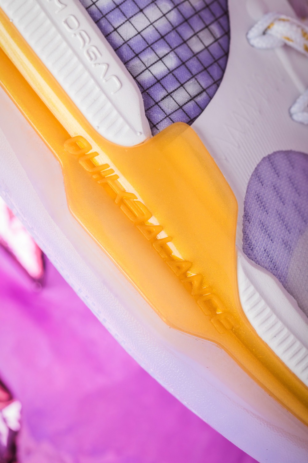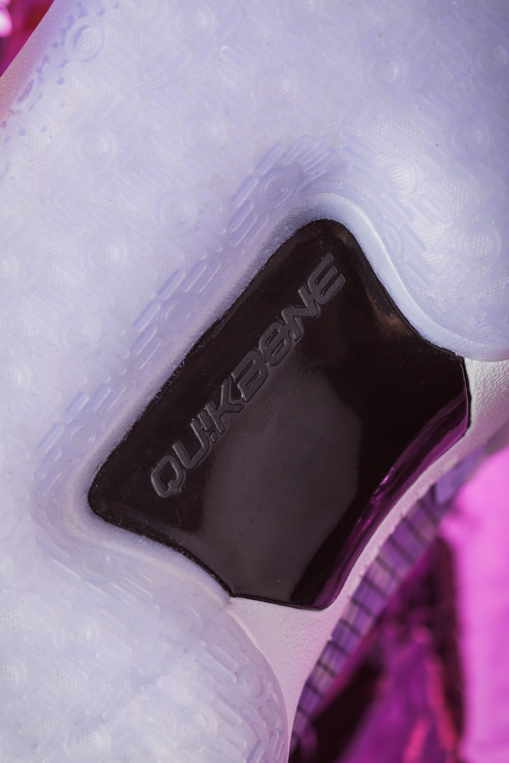 足弓处添加了一块 TPU 材质的 QU!KBONE 稳定片,在变向、急停动作中大大增加稳固抗扭效果,为双脚提供更强的保护性。