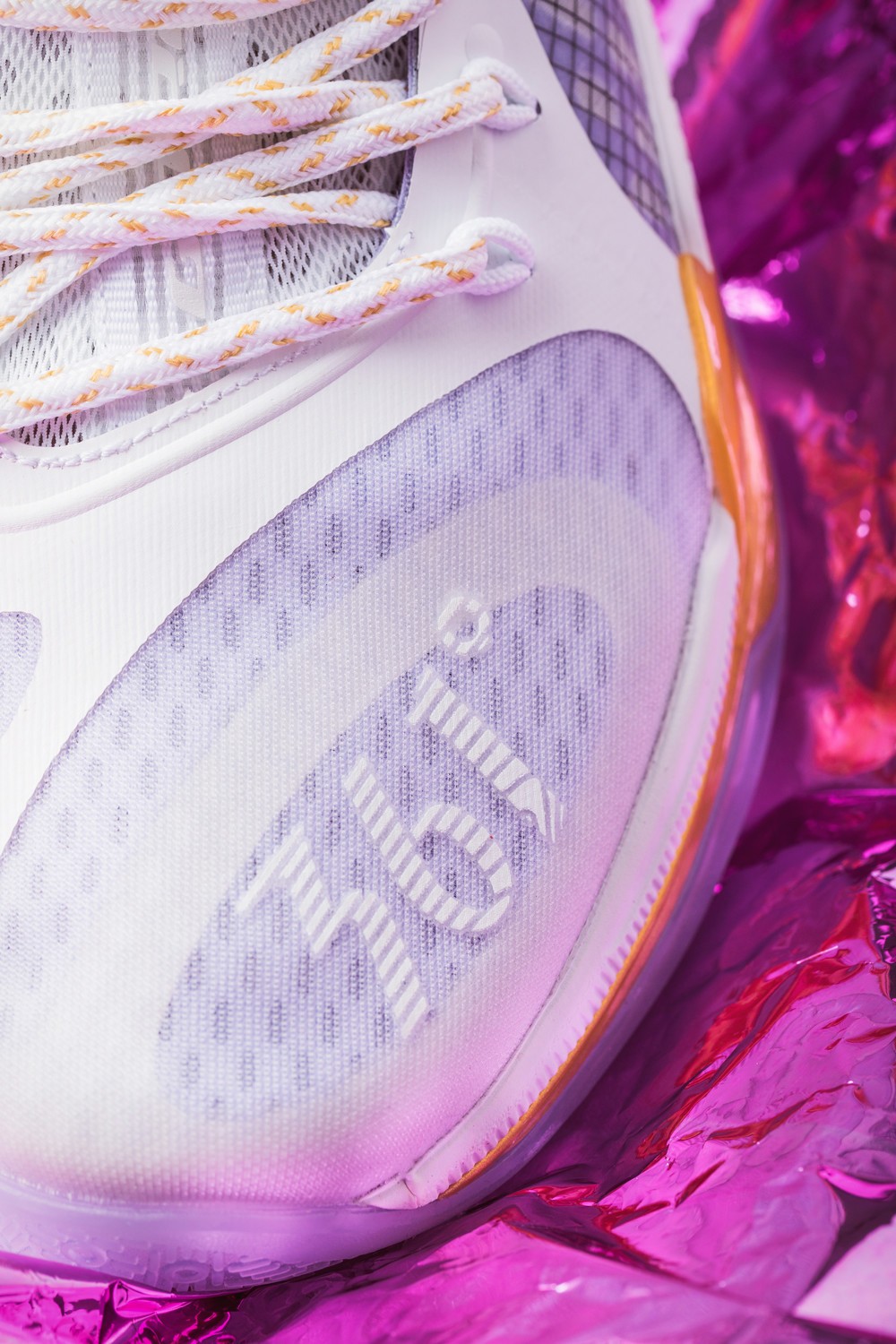 整双鞋以白色为主调,细节辅以淡紫色衬托,清新的造型十分适合夏日穿着。